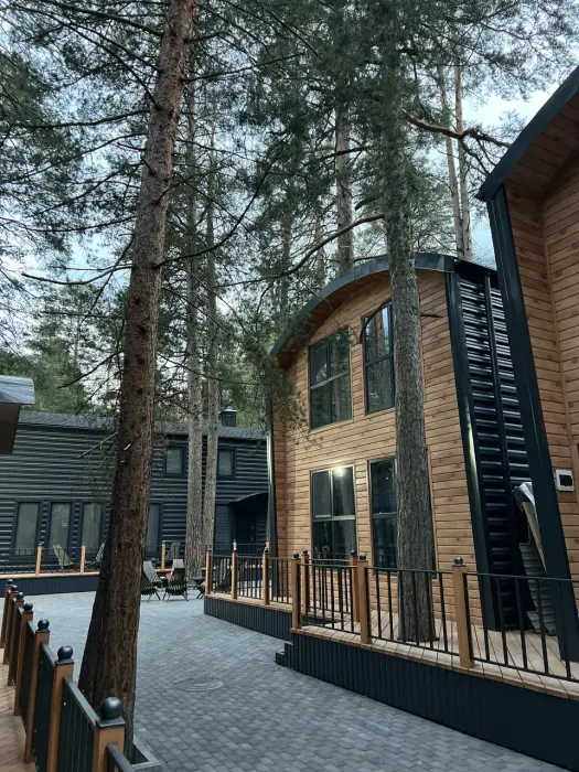 Витражные окна номеров позволят насладиться видом заповедного соснового бора и горных вершин Кавказа.