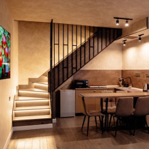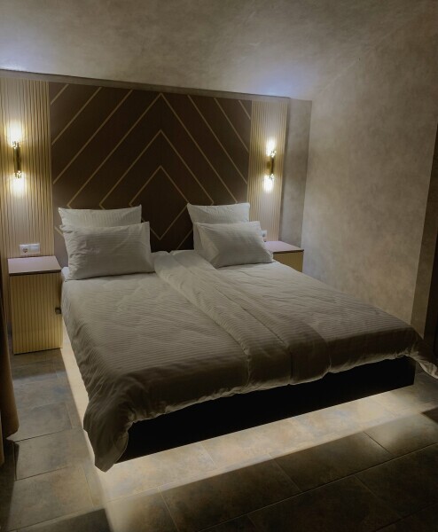 Двухэтажный номер с отдельным частным входом, двумя санузлами, кухней, двумя спальнями с 2-местными кроватям и гостиной.