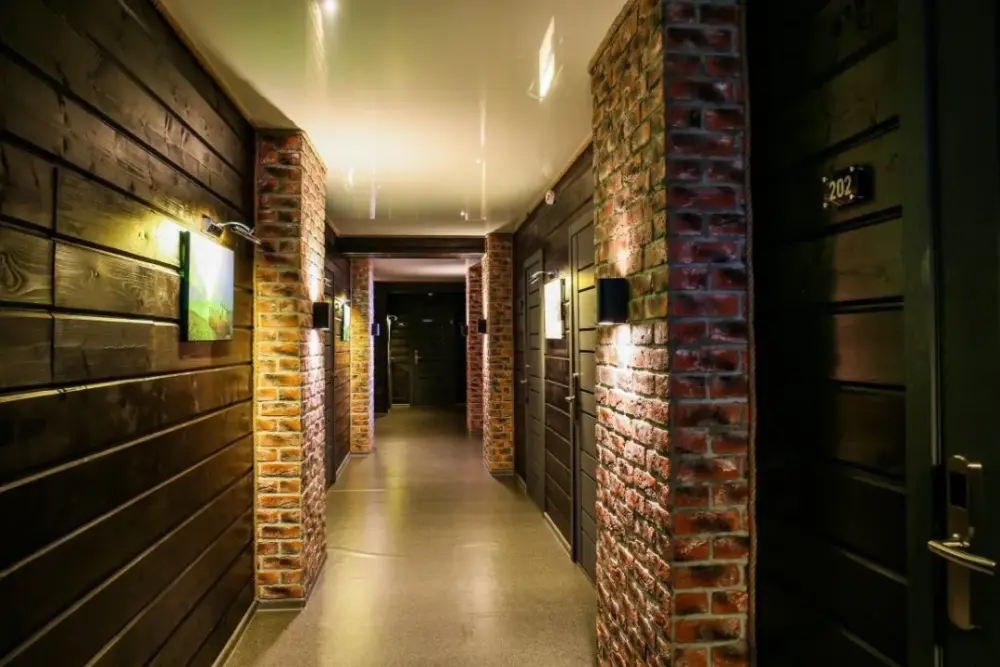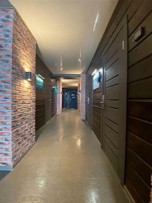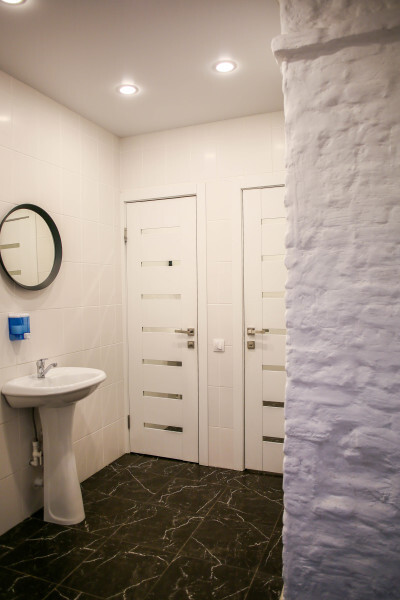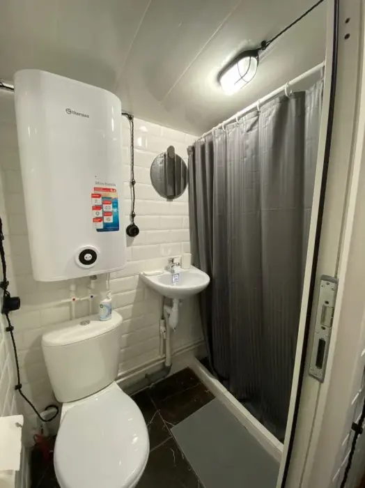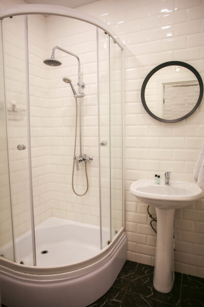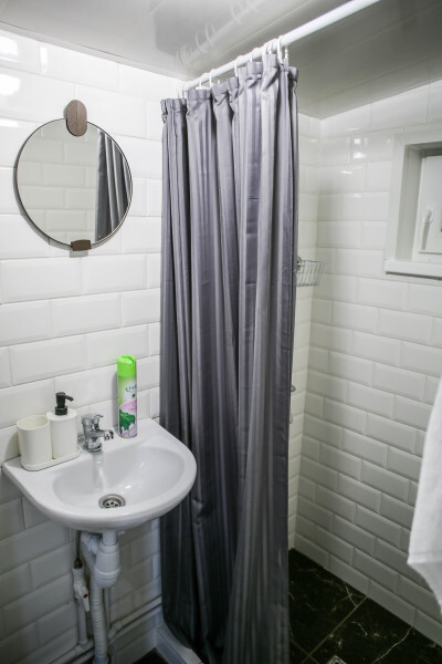 Трехместный номер с удобными матрасами, плотными шторами, письменным столом, телевизором. Удобства на этаже. На первом этаже 3 душевых совмещенных с туалетом, 2 туалета отдельно. На втором этаже 3 душевых и 4 туалета.