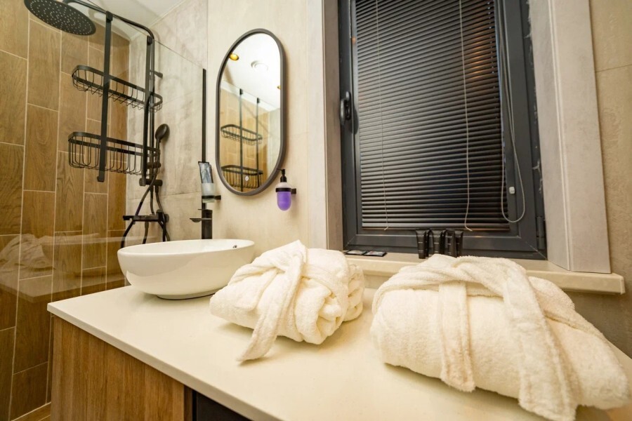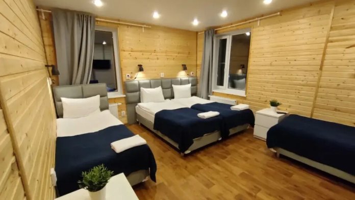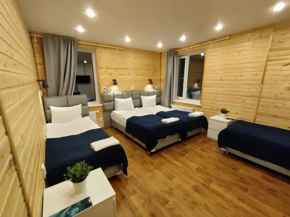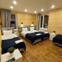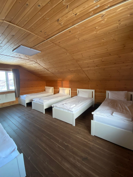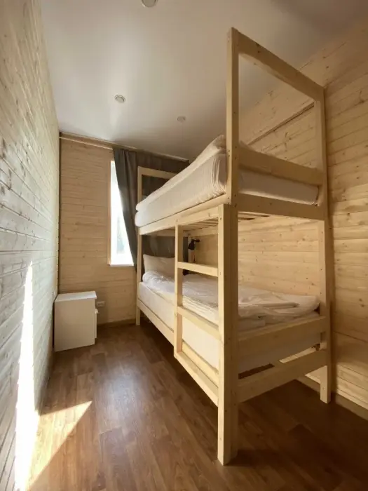 Номер категории комфорт в котором можно соединить кровати, но без топпера. На первом этаже 3 душевых совмещенных с туалетом, 2 туалета отдельно. На втором этаже 3 душевых и 4 туалета. Есть кухня общего пользования. Проживание с животными запрещено.