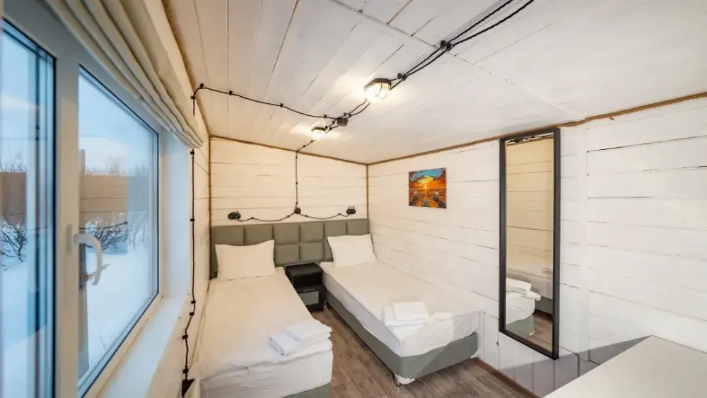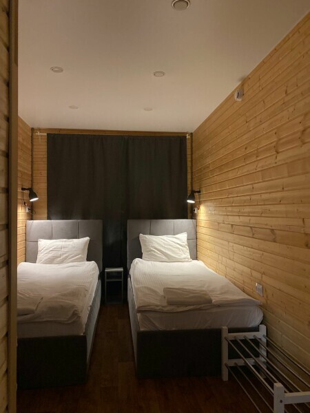 Двухместный номер с отдельными кроватями и общим туалетом и душем на этаже. На первом этаже 3 душевых совмещенных с туалетом, 2 туалета отдельно. На втором этаже 3 душевых и 4 туалета. Дополнительных мест не предусмотрено в номере. Есть кухня общего пользования. Проживание с животными запрещено.