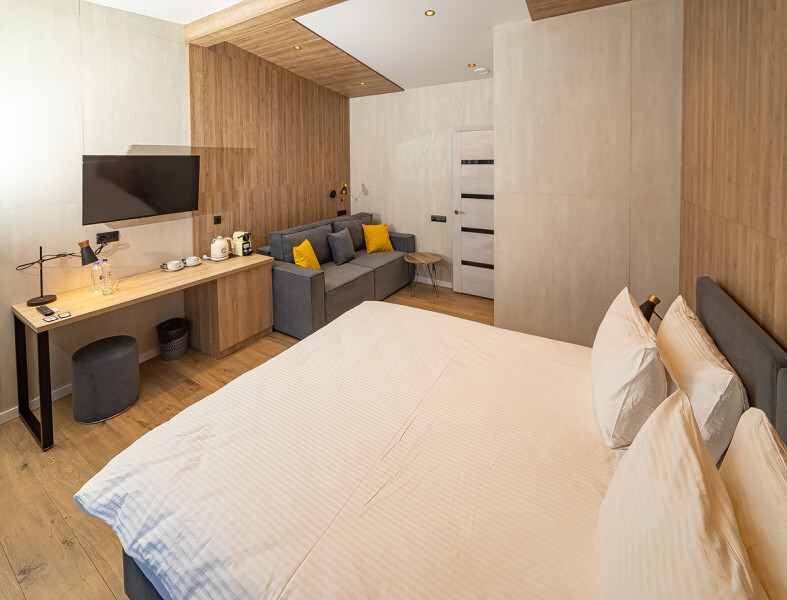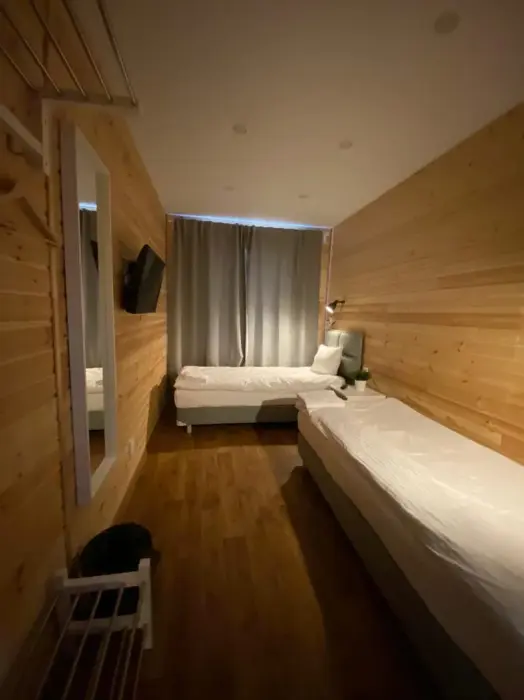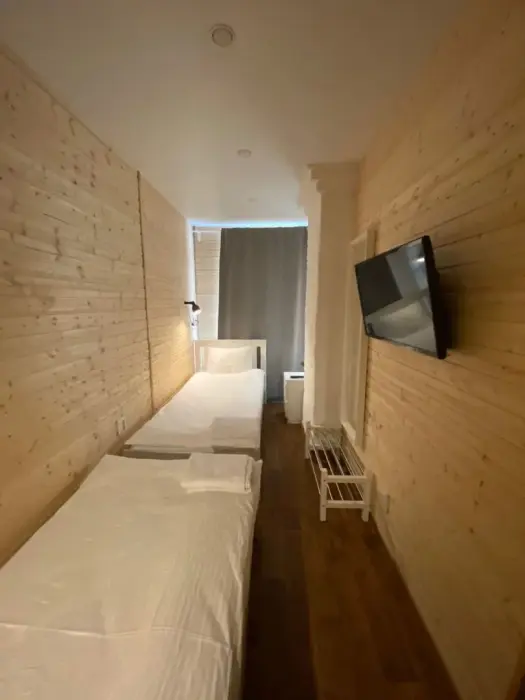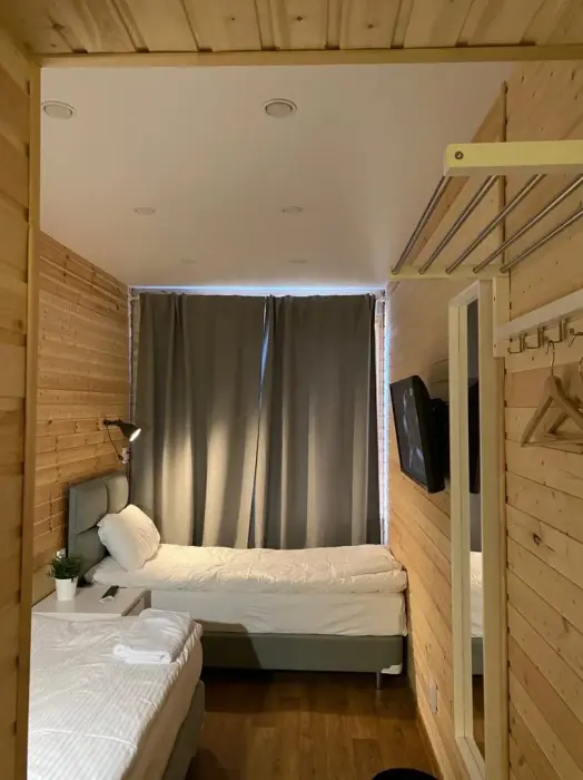 Номер класса комфорт с 2-я раздельными кроватями и ТВ, шкаф. Души и туалет на этаже. Дополнительных мест не предусмотрено в номере. Есть кухня общего пользования. Проживание с животными запрещено.