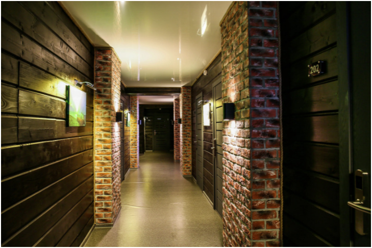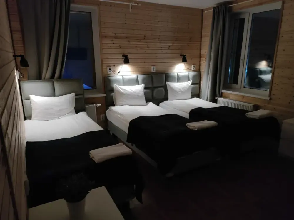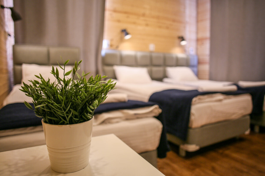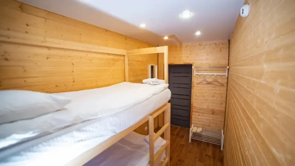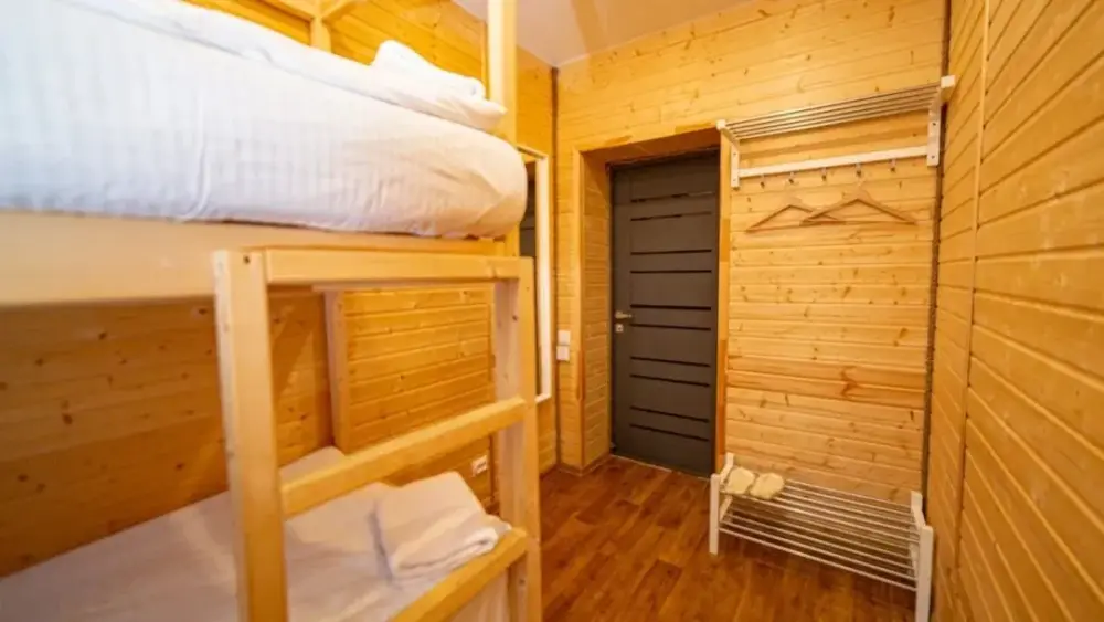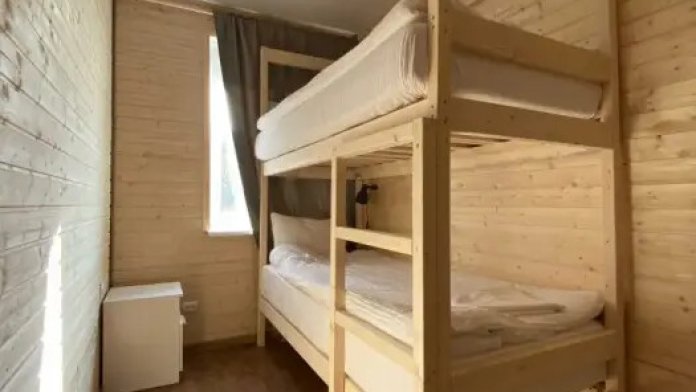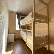 Четырехместный номер, с удобными кроватями, плотными шторами, небольшим письменным столом, телевизором. Удобства на этаже. Есть кухня общего пользования. Проживание с животными запрещено.