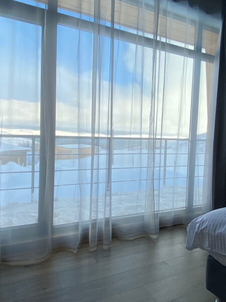 Уютные номера с панорамными окнами, из которых открывается вид на озеро.