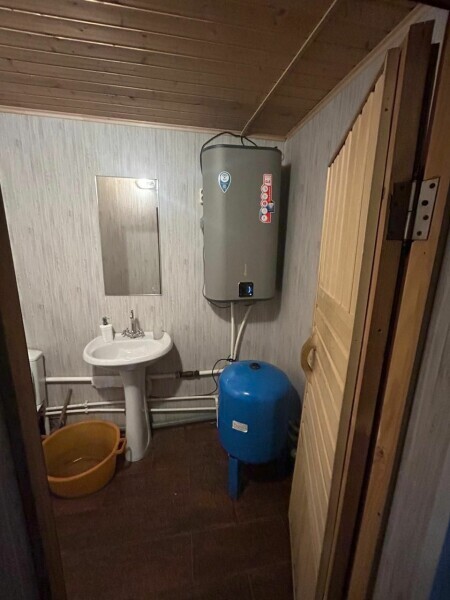 На первом этаже кухня, сан. узел и баня