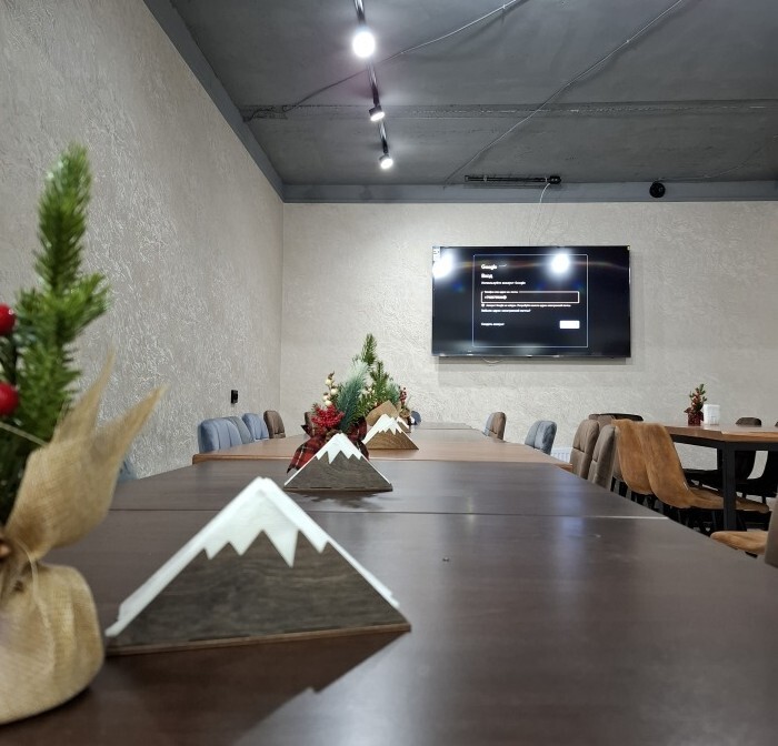 На цокольном этаже имеется столовая. В общем доступе круглосуточно холодильник, микроволновка, термопот, столовая посуда.