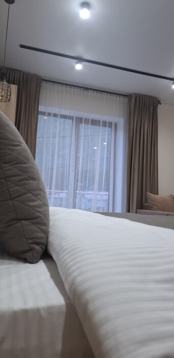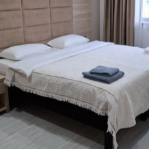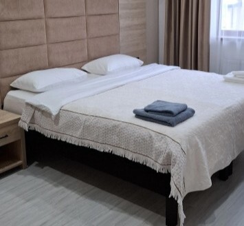 Большой светлый двухместный номер. Большая двуспальная кровать. Белоснежное белье и средства гигиены.
