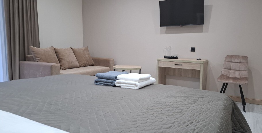 Гостям предлагаются номера категории «Стандарт». В номере имеется телевизор, холодильник, чайник. Ванная комната оснащена отличной сантехникой и всеми гигиеническими принадлежностями.