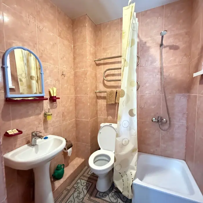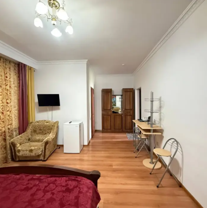быстрый интернет, фен, холодильник, чайник, телевизор, сушилка для полотенец, шампунь, гель, мыло, фен, зубная щетка с пастой, тапочки, полотенца.
