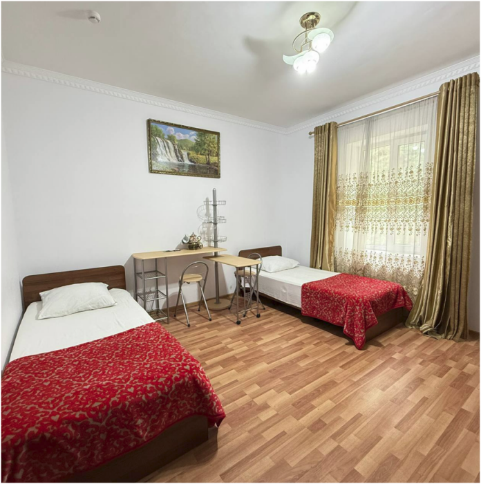 В номере: две комфортные односпальные кровати,