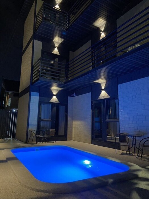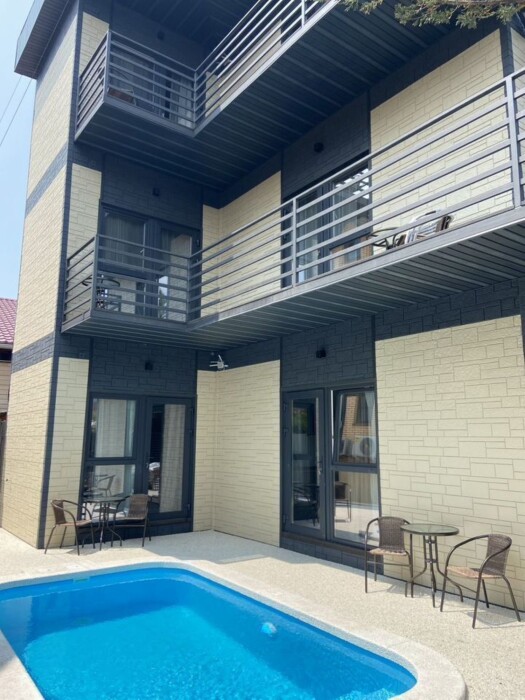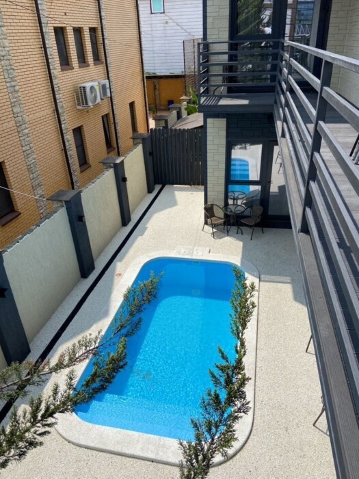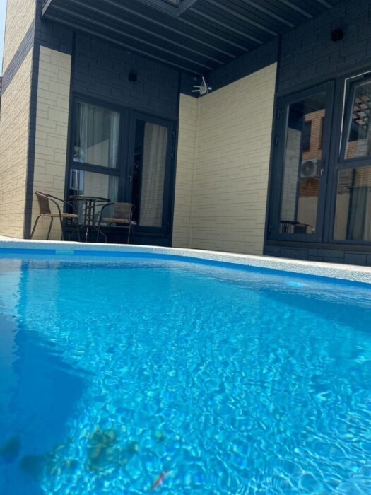 Бассейн с подогревом - отличное место для отдыха и релаксации в любое время года. Шезлонги для принятия солнечных ванн.