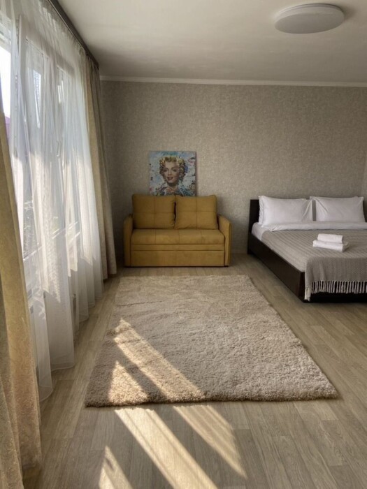 В нoмере Вас ждeт: двуспальная кровать и раскладной диван, обеспечивающие комфортный сон для всей семьи или компании.