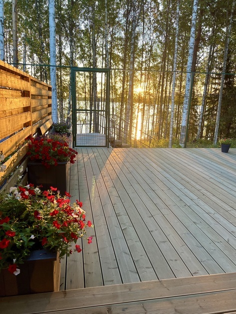 Мы позаботились, чтобы у Вас было всё для комфортного проживания: каждый дом имеет свою террасу с потрясающим видом на лес и озеро, где можно наслаждаться закатами и рассветами. Внутри Вас ждут все удобства: гостиная с панорамными окнами с видом на лес и озеро, современная кухня, удобная мебель, отдельная спальная комната с двуспальной кроватью, санузел.