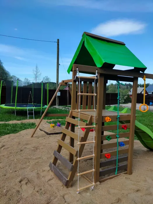 Своя скважина, лес прямо за домом. Территория огорожена, два домика разделяющие детской площадкой, у каждого домика своя парковка, мангал, беседка - никто не мешает.