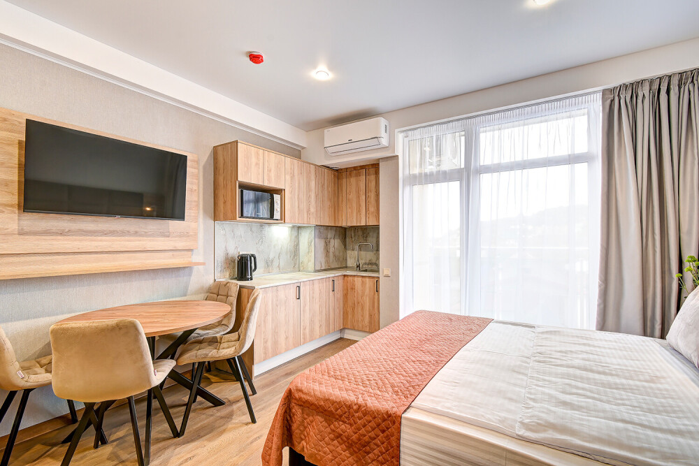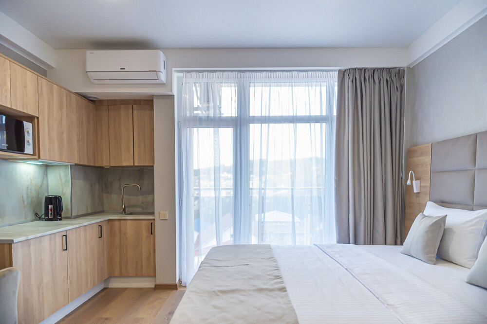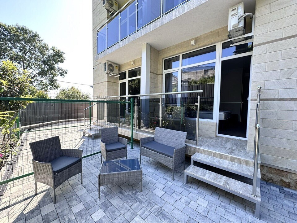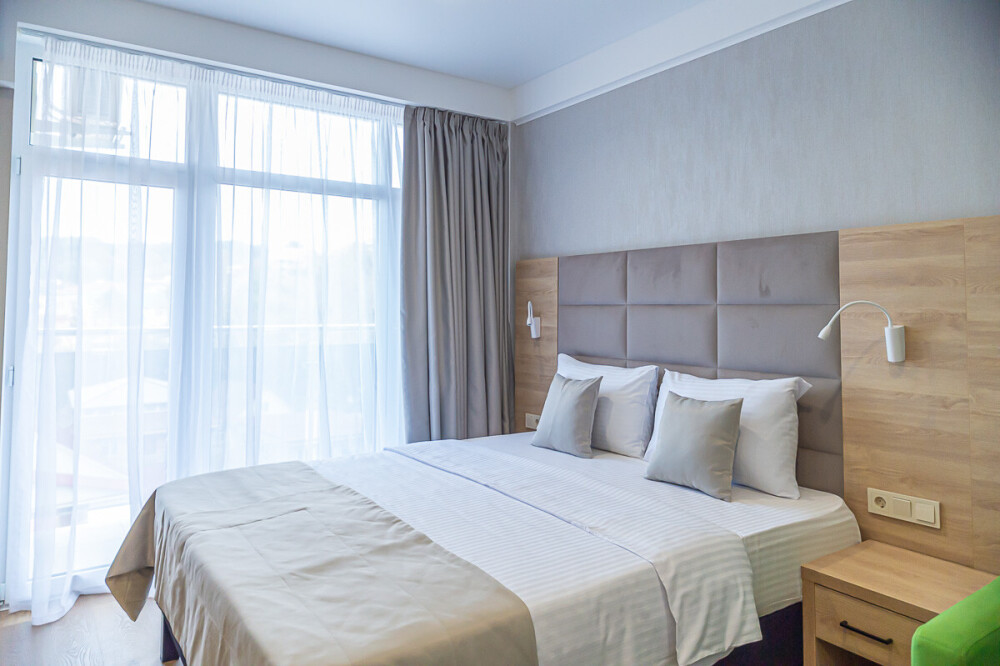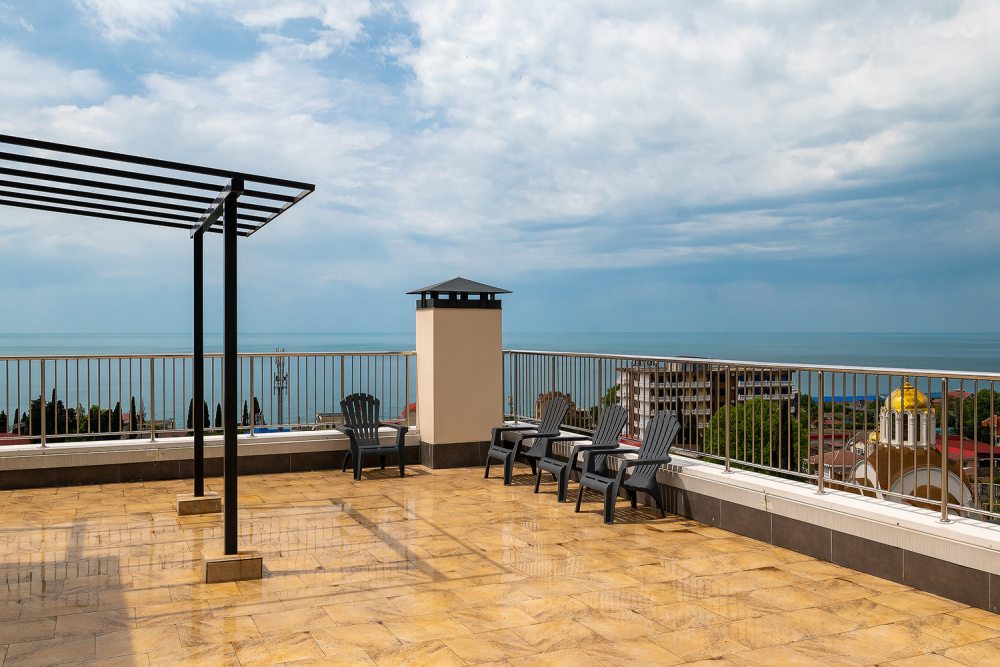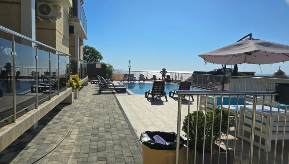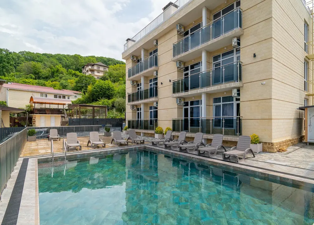 До пляжа можно дойти пешком за несколько минут по ровной дороге, без крутых спусков и пересечения проезжей части. Отель находится в тихом районе, при этом рядом есть объекты городской инфраструктуры. В пешей доступности расположена железнодорожная станция, что удобно для перемещений по побережью и поездок в центр Сочи.