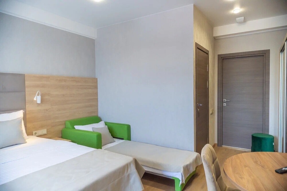 В номере одна двуспальная или две односпальные кровати (под запрос).