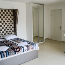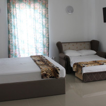 Номера со всеми удобствами (туалет и Тропический душ в номере), постоянно холодная и горячая вода, каждый номер оборудован балконом с прекрасным видом на город и местные горы, номера рассчитаны на 2-3 человека, холодильник в номере, наличие кондиционера, телевизор, кофемашина, чайник, кровать King-Sitze 180x200, диван и бесплатного Wi-Fi. Для вашего комфортного размещения 3 этажа, на каждом имеется гладильная доска с утюгом.