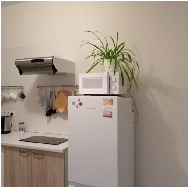 - Полностью оборудованная кухня: с микроволновой печью, холодильником, плитой, эл.чайником, набором посуды и столовых принадлежностей.