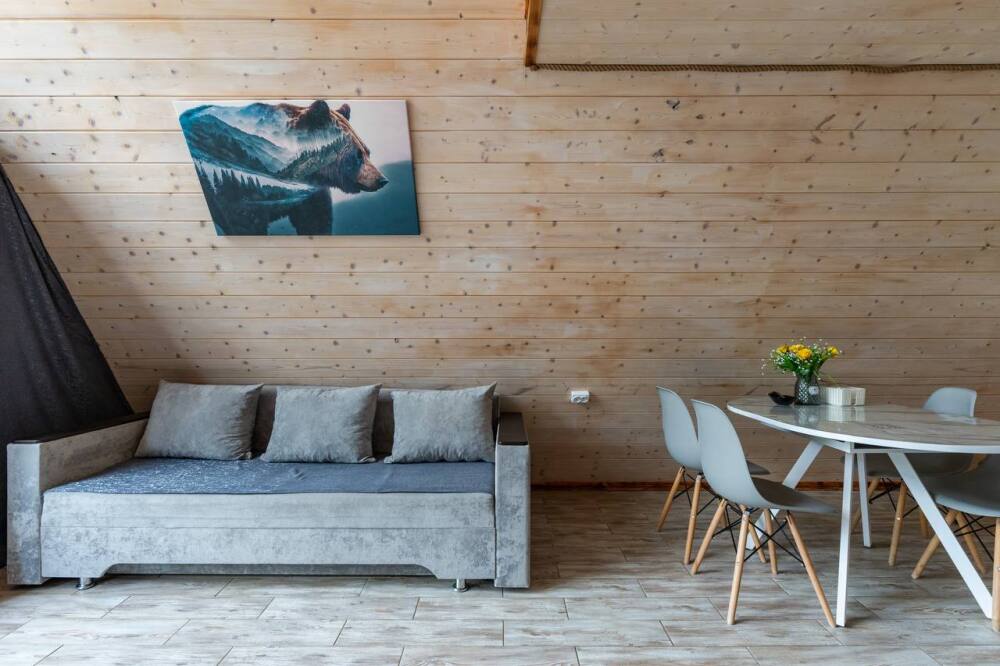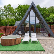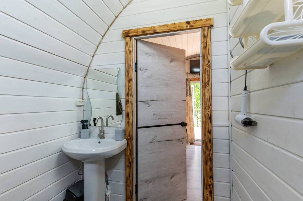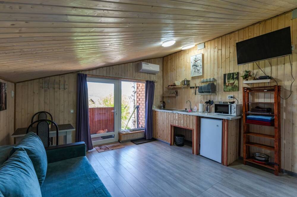 Для размещения гостям предлагают дома А-фрейм, арочный дом и номера с балконом вместимостью от 2 до 5 гостей. Все дома и номера оснащены: Wi-Fi, кухней, санузлом, кондиционером, холодильником, электрической плитой, микроволновкой, стиральной машиной, водонагревателем, телевизором, феном, посудой, кроватью, диваном, обеденной зоной (стол, стулья).