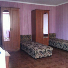 Двухкомнатный номер.В одной комнате - двухспальная кровать. Во второй комнате - три односпальные кровати, диван-кровать, кондиционер, телевизор. На веранде, с прекрасным видом на море - диван, стол , стулья, холодильник, чайник.