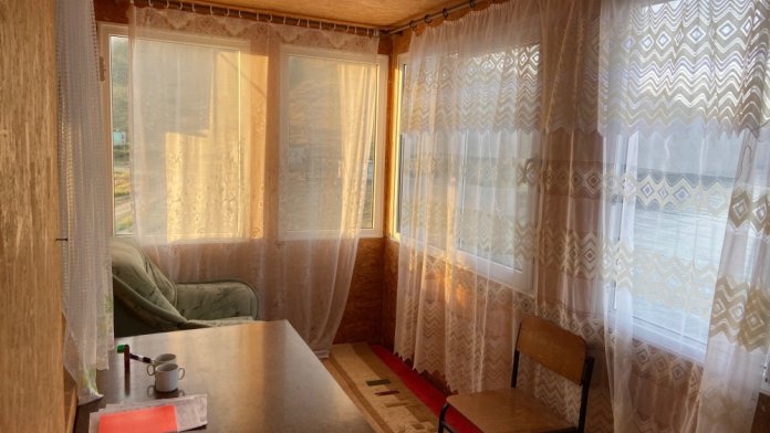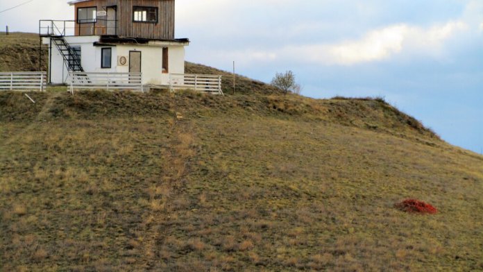 Домик стоит на пригорке у самого Черного моря. Комнаты на первом этаже: жилая и небольшая дополнительная комната с холодильником и столом. На втором этаже есть смотровая комната с окнами на все четыре стороны света. Это самая высокая точка на Бугазе.