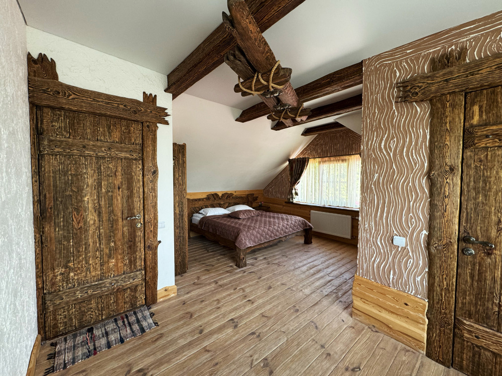 Дом может разместить до 4 гостей и не оставит равнодушными гостей своей атмосферой комфорта, уединения и уютного тепла исходящего от дерева.