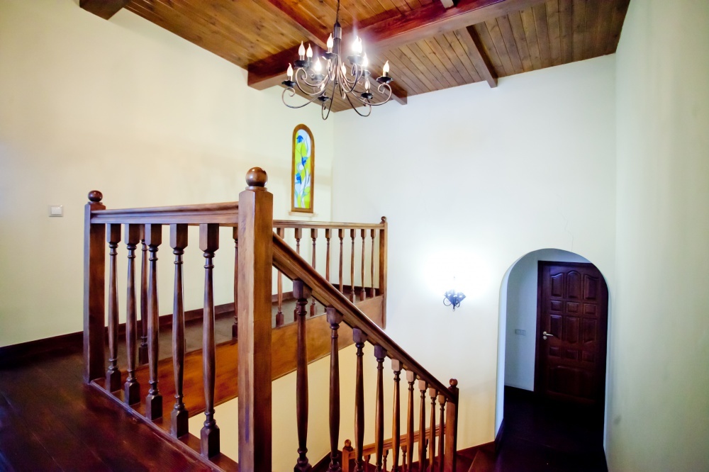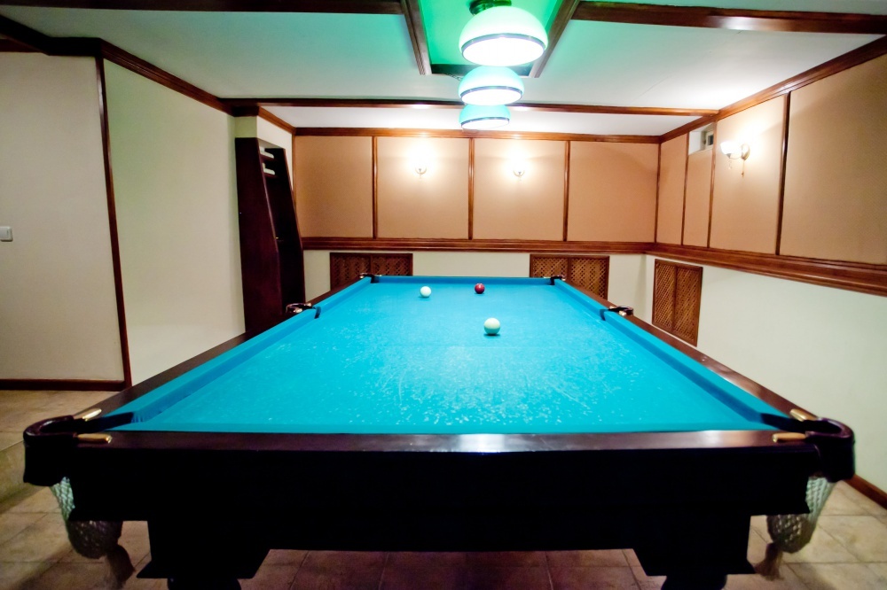 В доме 4 уровня - 3 жилых надземных этажа и - 1 цокольный этаж, в котором расположена бильярдная.