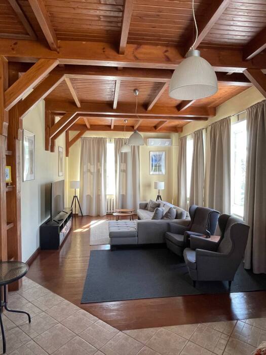 Пять просторных комнат, большая гостиная, вместительная кухня с большим столом, 2 санузла укомплектованы всем необходимым для приятного отдыха.