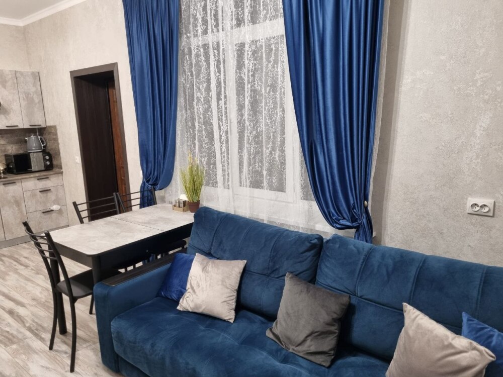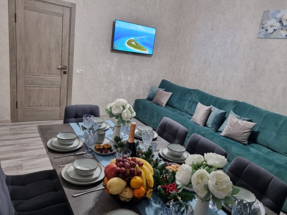 Кровать с ортопедическим основанием 180×200, диван с ортопедическим основанием 160×200, холодильник, микроволновка, фен, полотенца, банные халаты, одноразовые тапочки, гель для душа, шампуни и мыло.