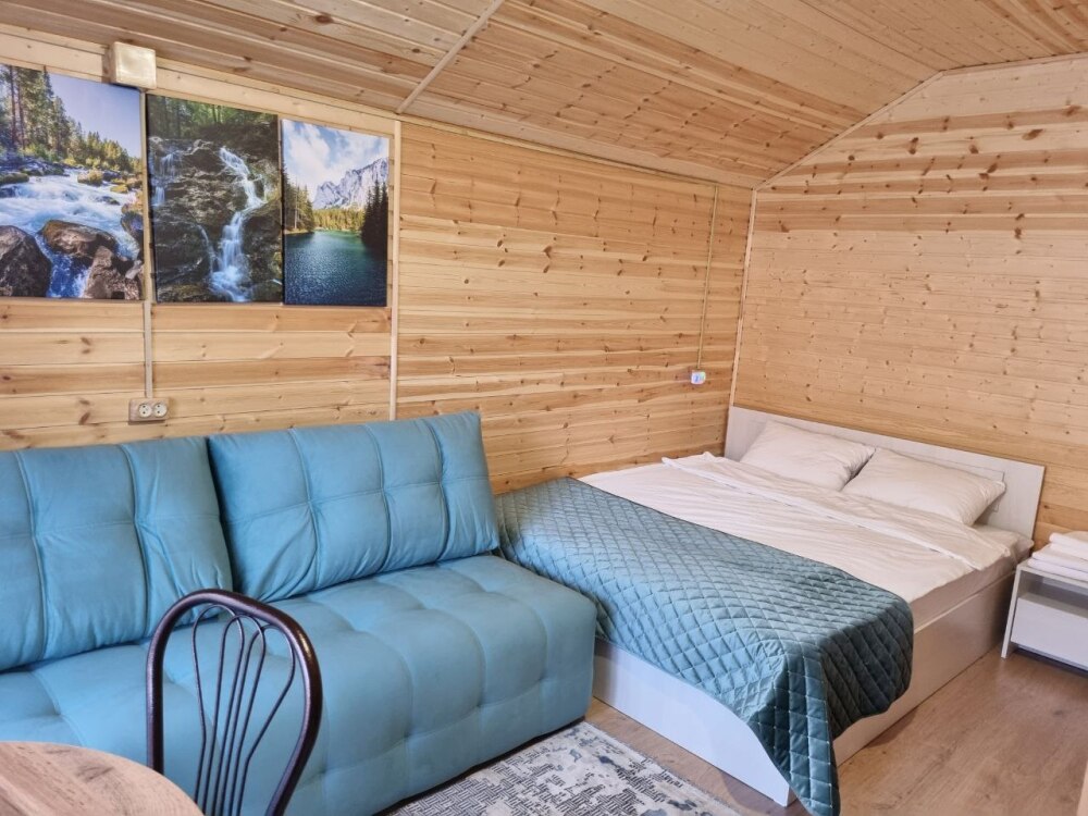 Гостевые домики 5-ти местного размещения Максимальное оснащение наших домиков, сделанное с любовью и заботой о Вас, позволяет абсолютно комфортно провести отпуск всей семьёй.