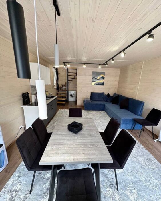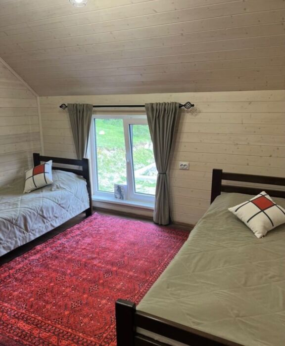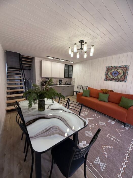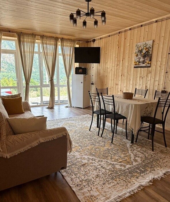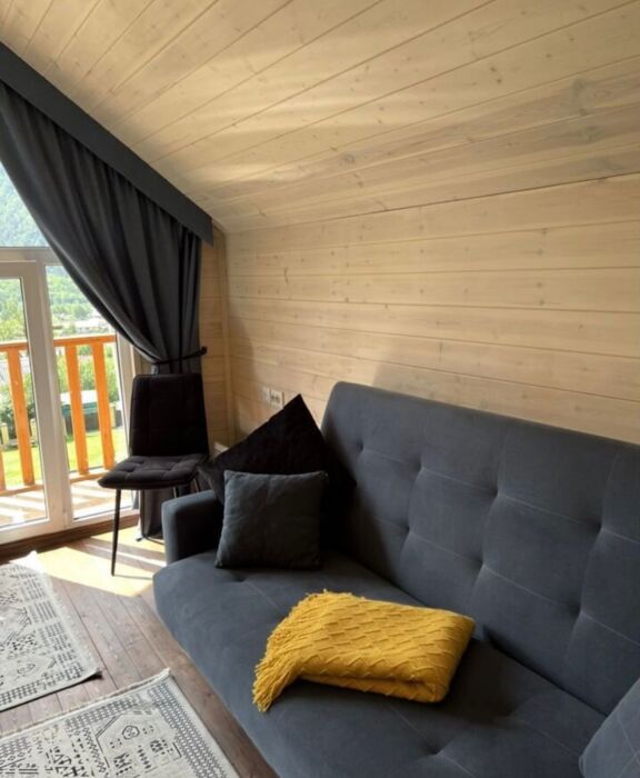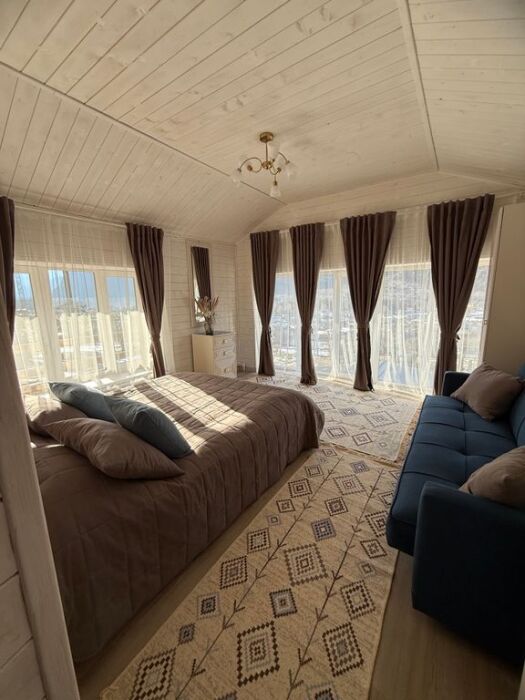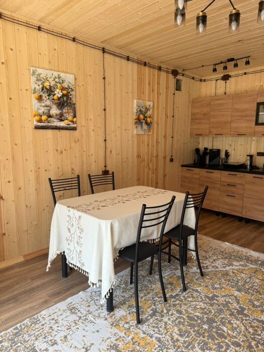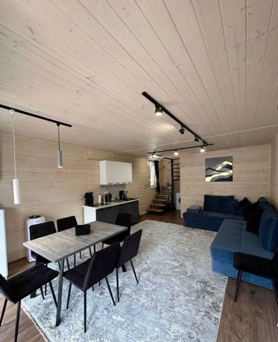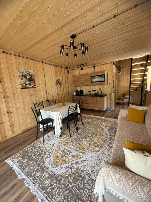 В доме просторная гостиная и кухонная зона со всей необходимой техникой и посудой. Две изолированные спальни с выходом на балкон. В доме: инверторные обогреватели. Беседка, мангал, костровая зона. Также мы предоставляем чистое постельное белье, набор полотенец, дрова и уголь.
