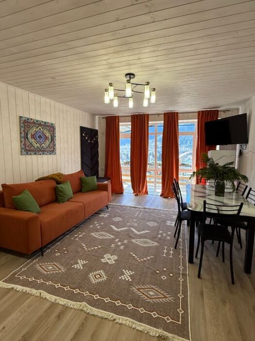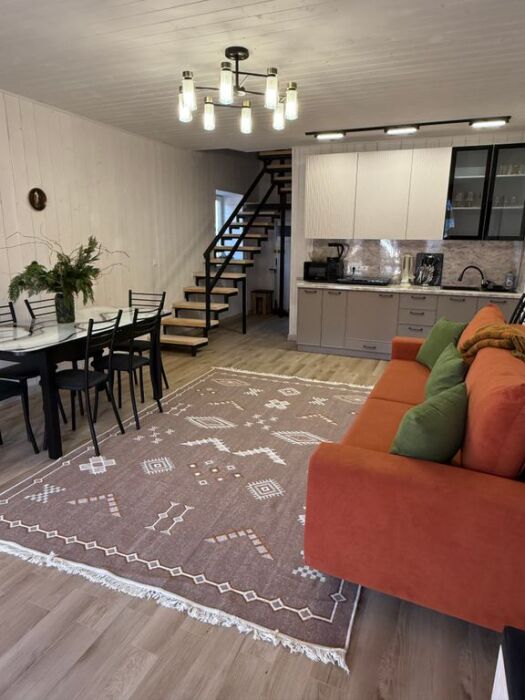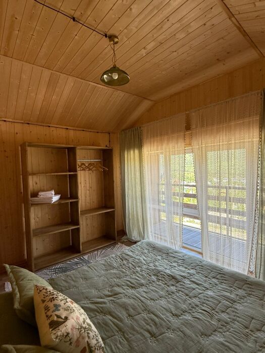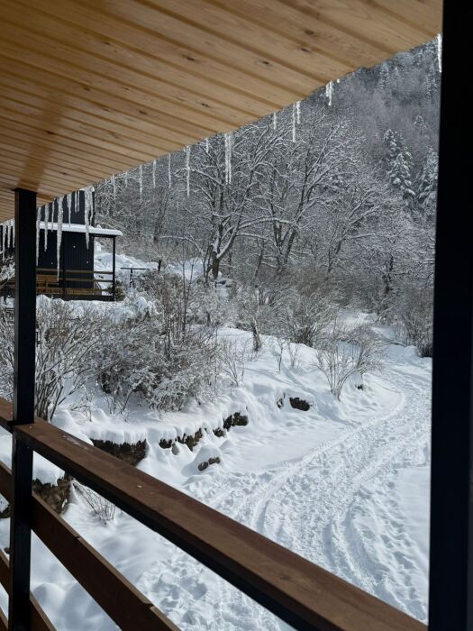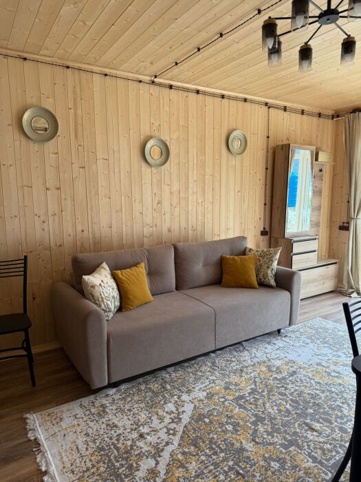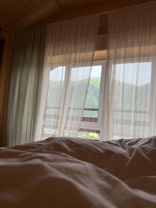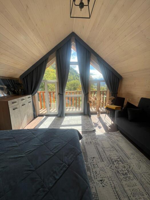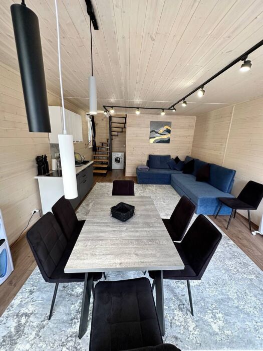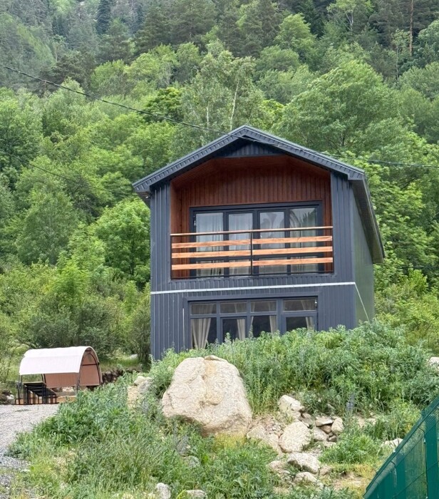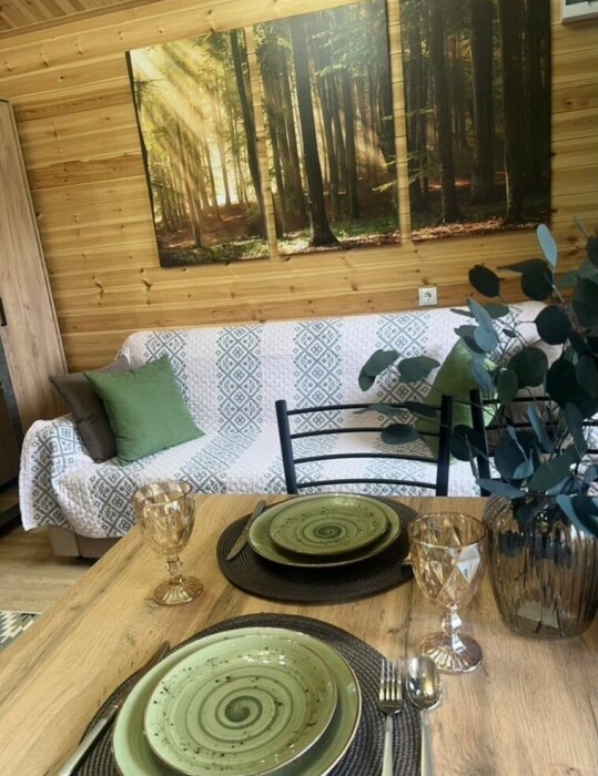 В доме просторная гостиная и кухонная зона со всей необходимой техникой и посудой. Две изолированные спальни с выходом на балкон. В доме: инверторные обогреватели. Беседка, мангал, костровая зона. Также мы предоставляем чистое постельное белье, набор полотенец, дрова и уголь.