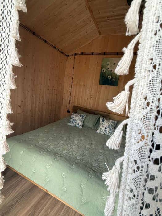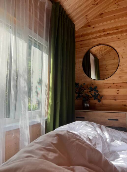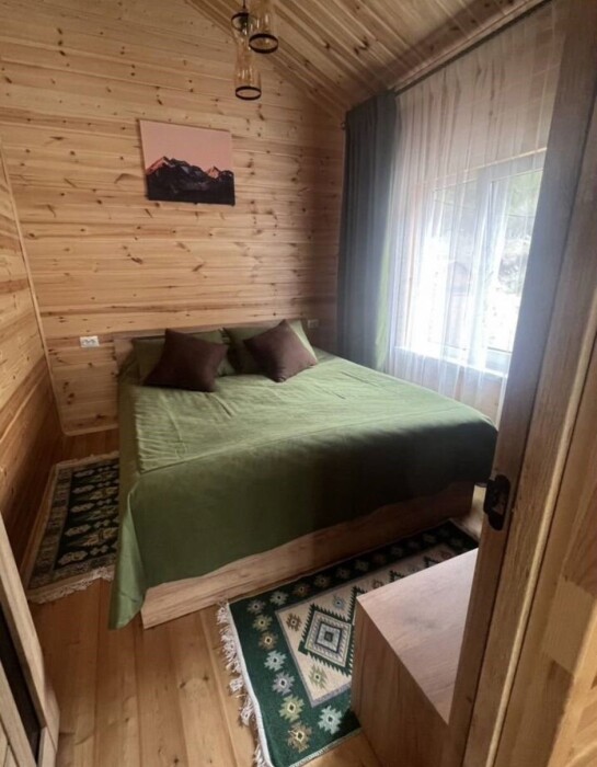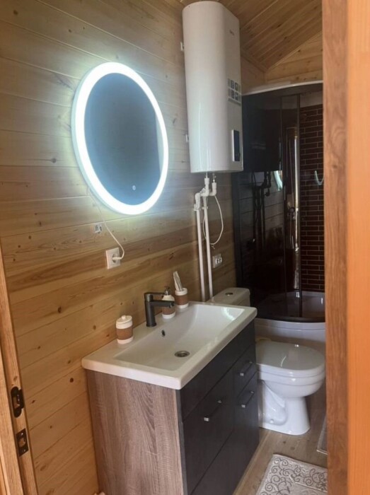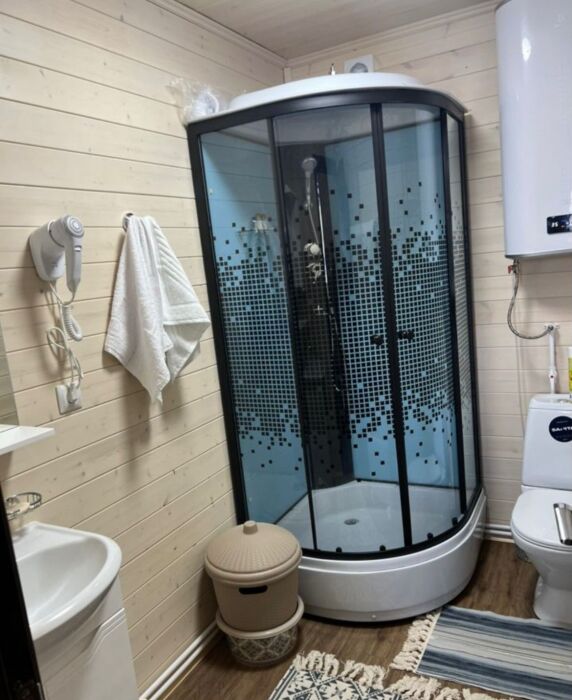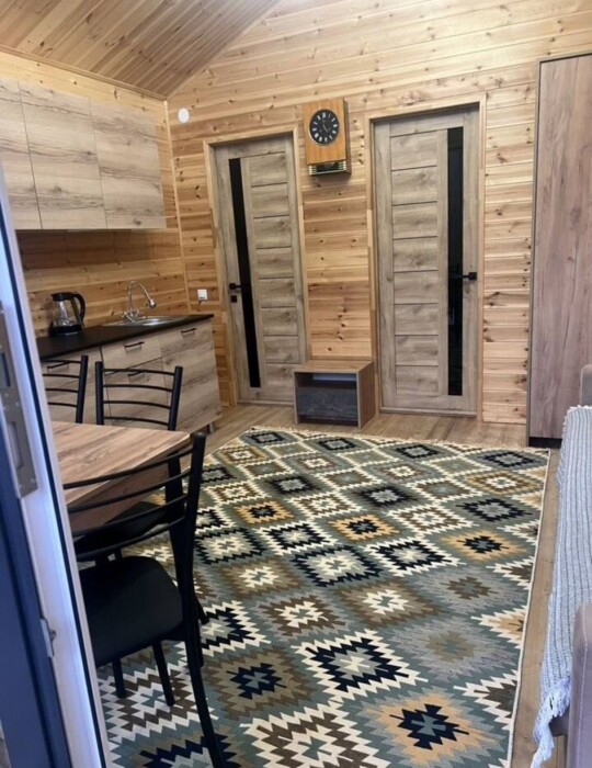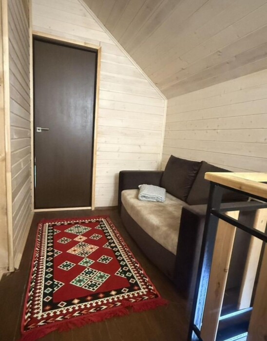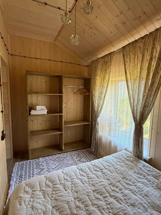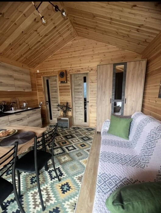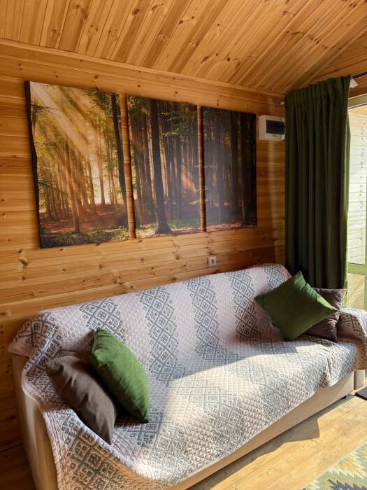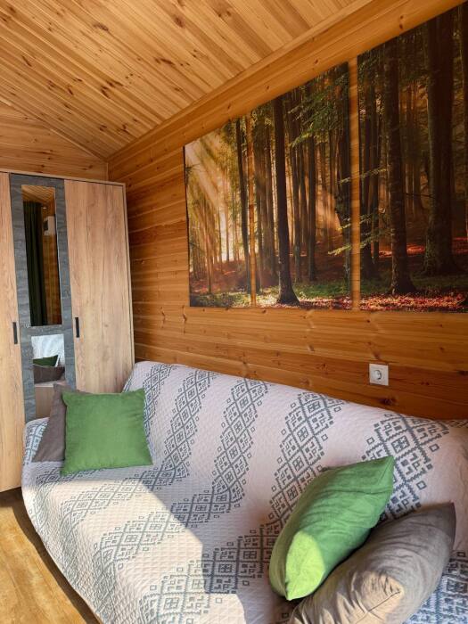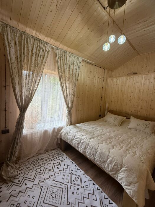 В домике изолированная спальня, гостиная и кухонная зона со всей необходимой техникой и посудой, санузел. В доме: инверторные обогреватели. Выход на террасу, беседка, мангал, костровая зона. Предоставляем постель, полотенца, средства личной гигиены, дрова и уголь.