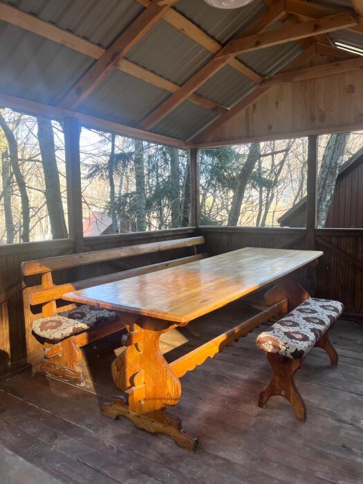 На территории для гостей есть: пaркoвка, зонa бapбeкю, коптильня, 2 бeседки, 2 очагa, дpoва.