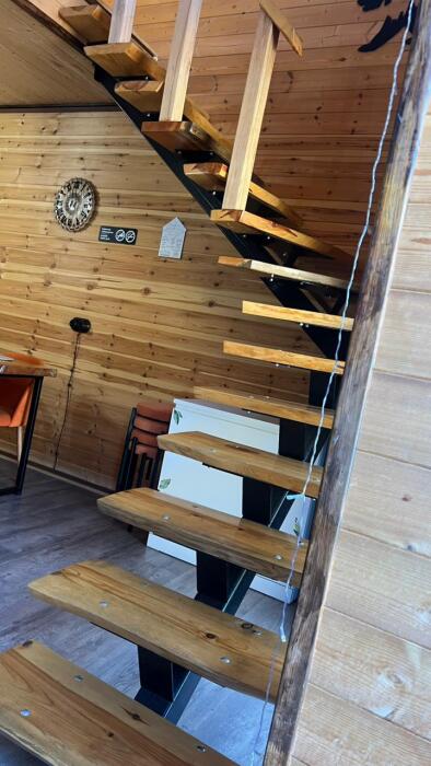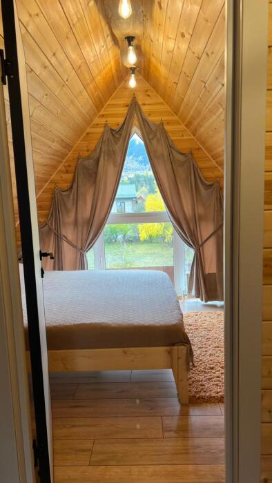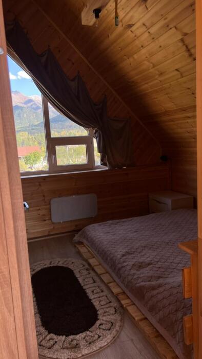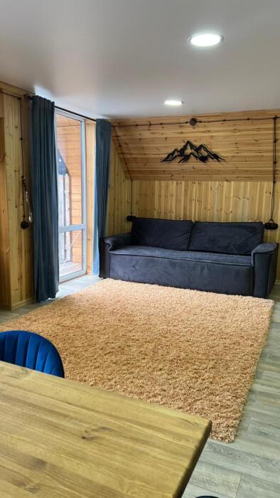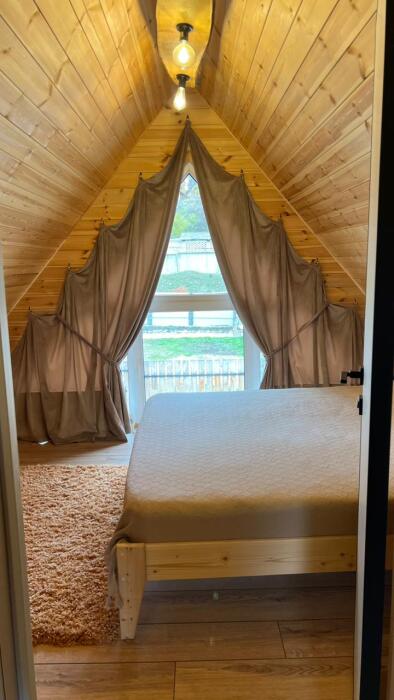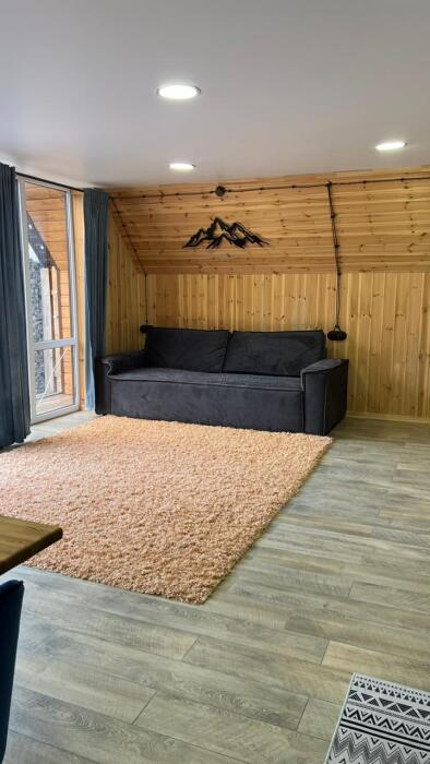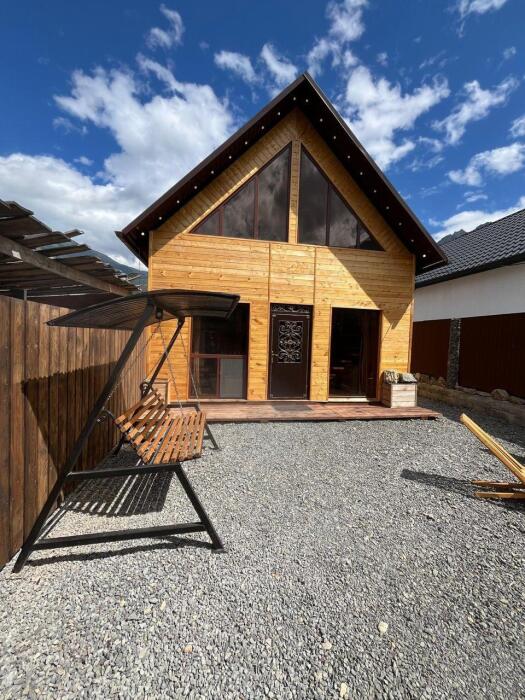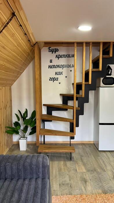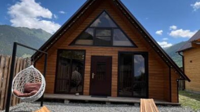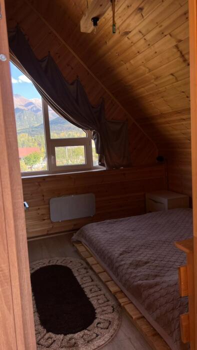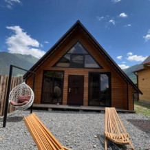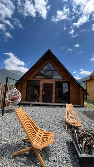 2-этажный уютный домик с великолепным видом на горы. Здесь уютные спальные места с удобными двуспальными кроватями. На первом этаже домика просторная гостиная с диваном, а также полностью оборудованная кухня.