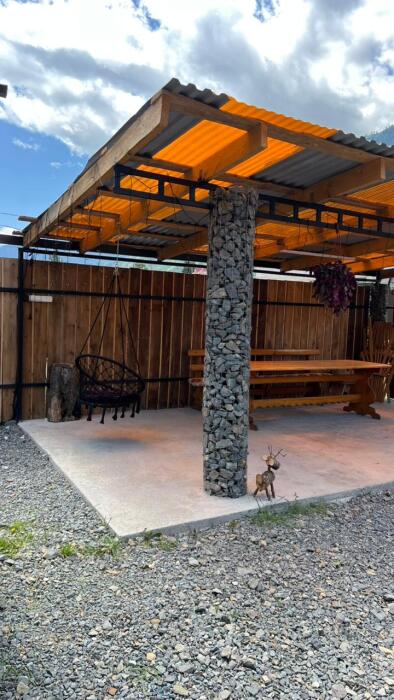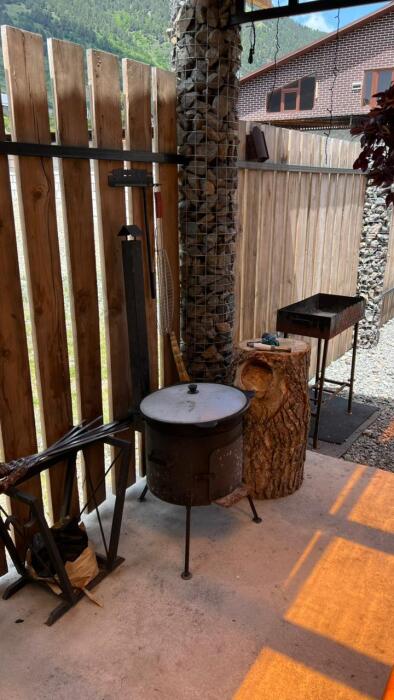 К услугам гостей уютная беседка на свежем воздухе, где можно насладиться завтраком под пение птиц и теплыми лучами утреннего солнца, либо уединиться с книгой или просто насладиться тишиной и покоем, отдыхая под шум листвы в волнующем танце. Неподалеку можно насладиться прогулками по живописным окрестностям, покататься на велосипеде по горным тропам, исследовать загадочные пещеры и водопады, или просто провести время на свежем воздухе, наслаждаясь красотой природы. После активного дня гости могут расслабиться в сауне или джакузи, поужинать на террасе, наслаждаясь прекрасным видом на горы и захватывающие закаты, либо просто посидеть у камина, наслаждаясь атмосферой уюта и тепла.
