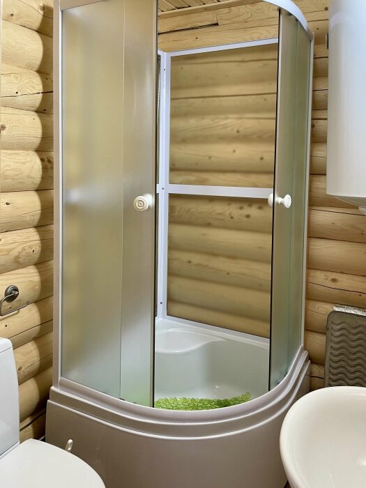 Коттедж оборудован кухней-гостиной, двумя отдельными спальнями (с 2-спальной кроватью и с двумя 1,5-спальными кроватями), собственной ванной комнатой с тёплым полом.