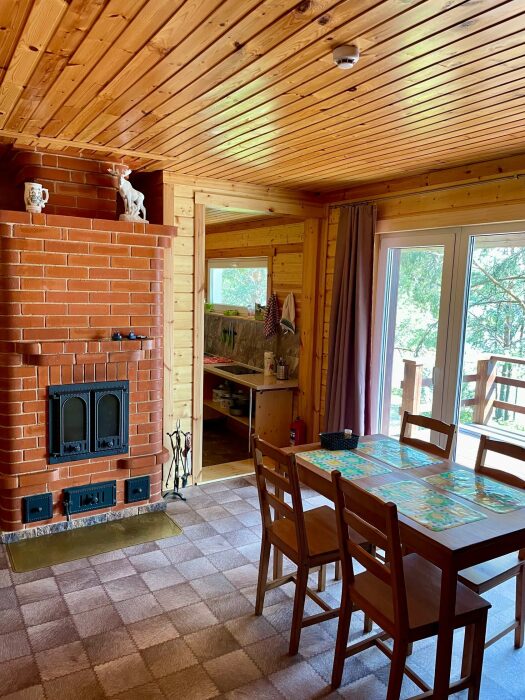 В кухне-гостиной имеется холодильник, электрическая варочная панель, чайник, микроволновая печь, обеденная зона, посуда для приготовления и сервировки, камин, бесплатный Wi-Fi, TV с плоским экраном и 2-спальный диван.