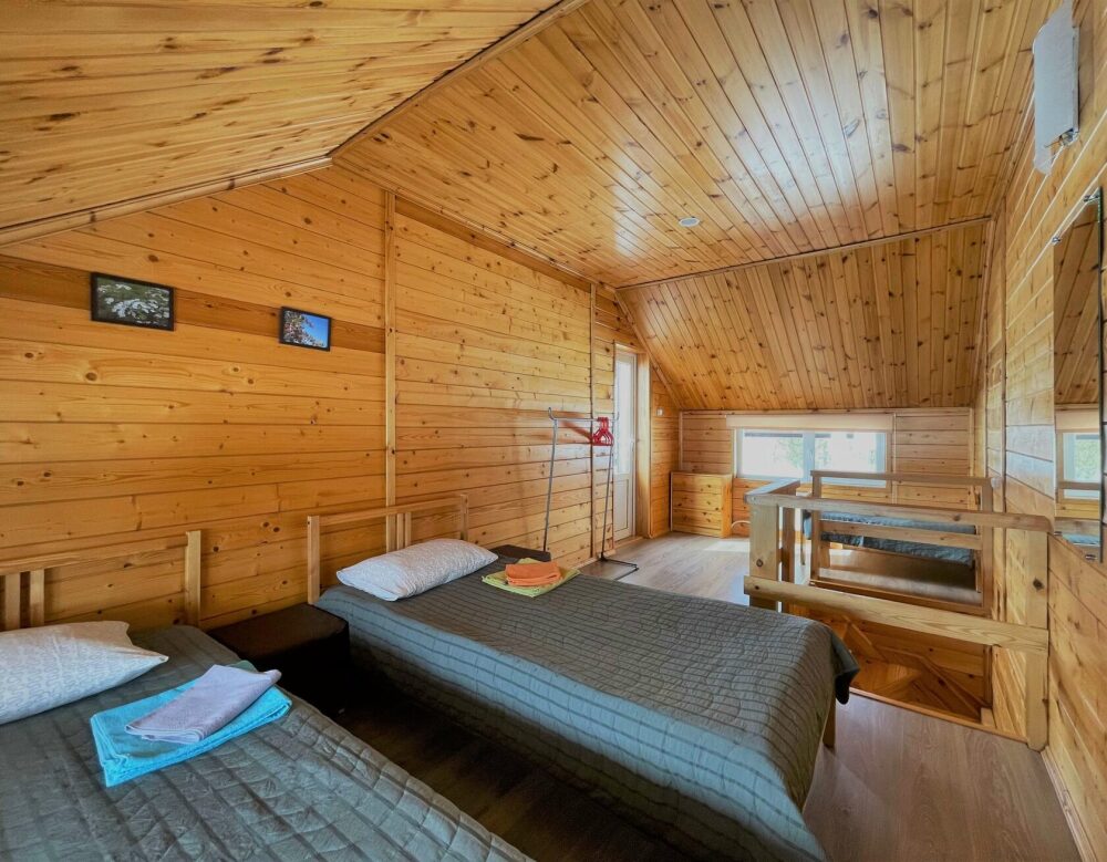 Размещение возможно в благоустроенных двухуровневых номерах и отдельно стоящих коттеджах с бесплатной парковкой. По предварительному согласованию допускается проживание с домашним питомцем.