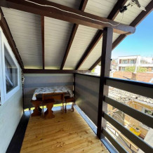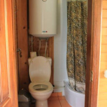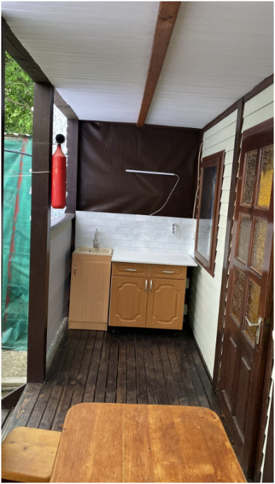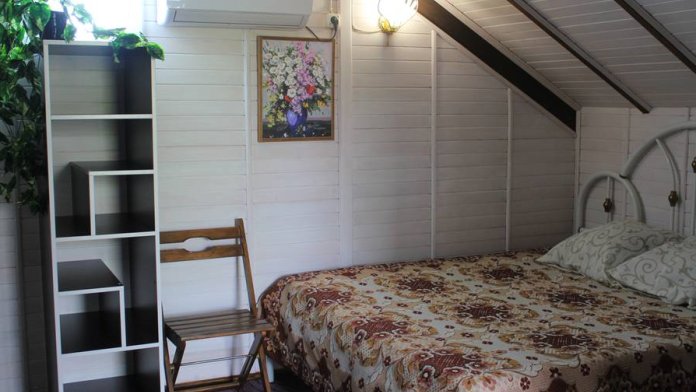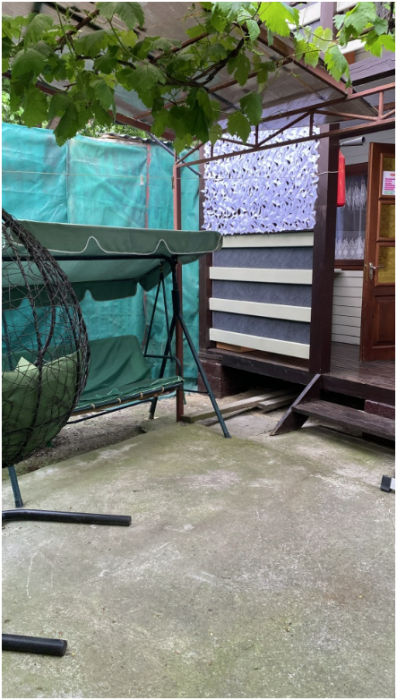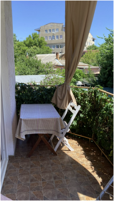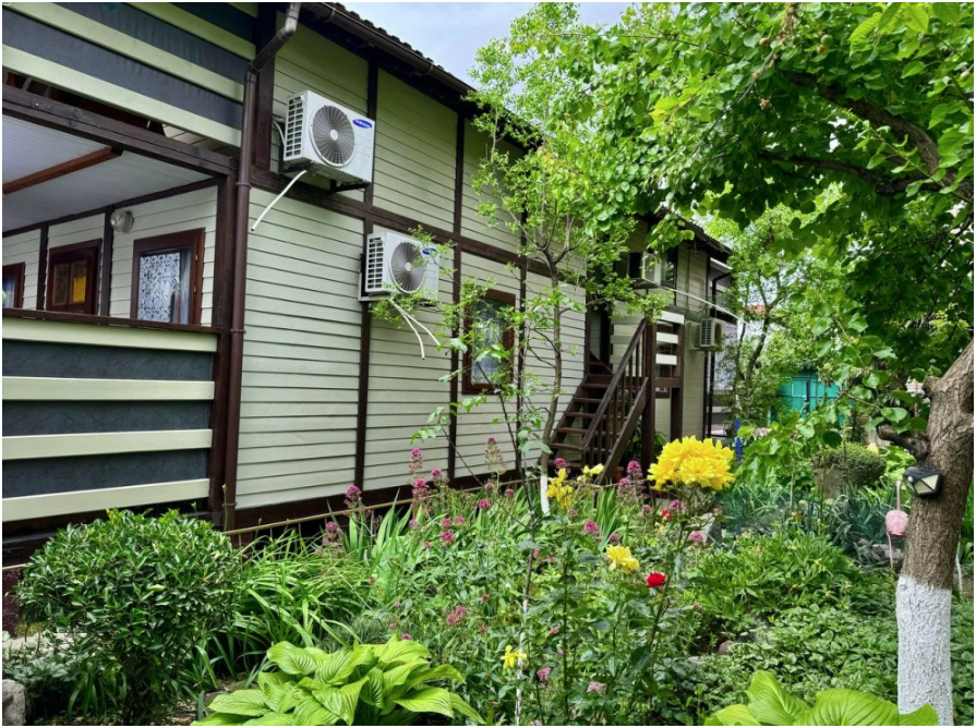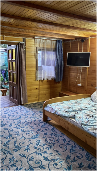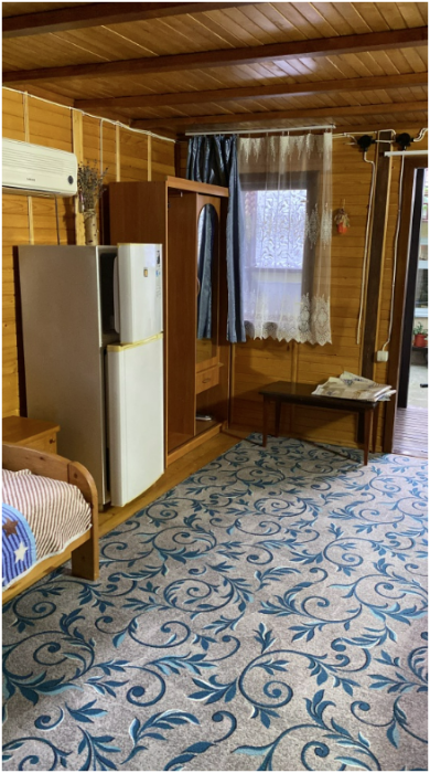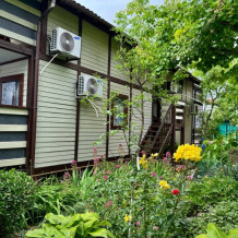 Летний домик из двух комнат на 4 человека. В каждой комнате холодильник, телевизор, вентилятор. Кухня летняя оборудована на свежем воздухе с обеденным столом, для приготовлении пищи стоит газовая четырехкомфорочная плита. Есть внешний собственный капитальный санузел и душевая, в шаговой доступности от комнат.