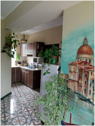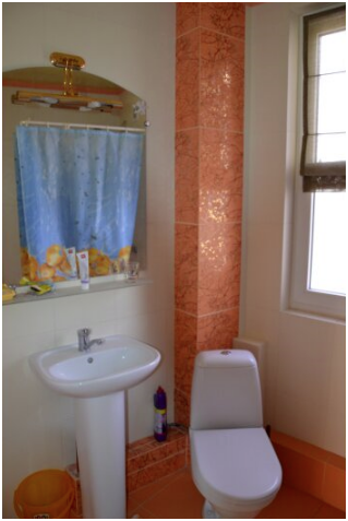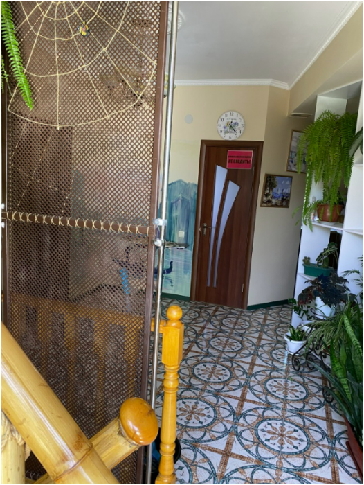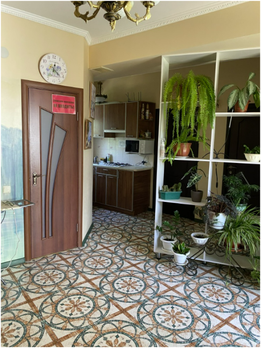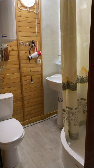 Санузел внешний (индивидуальный) рядом с номером. Кухня на этаже общая для трех номеров.