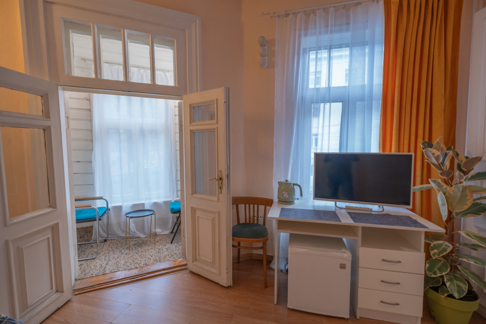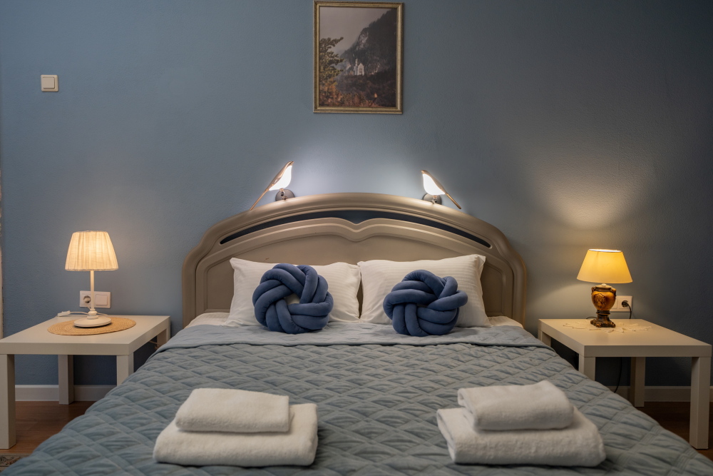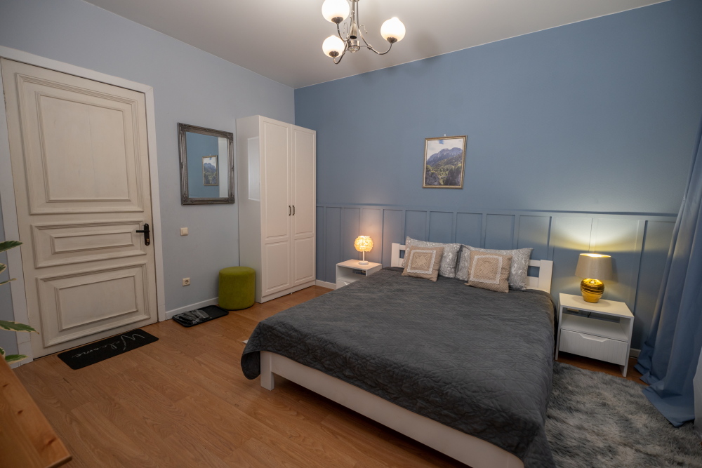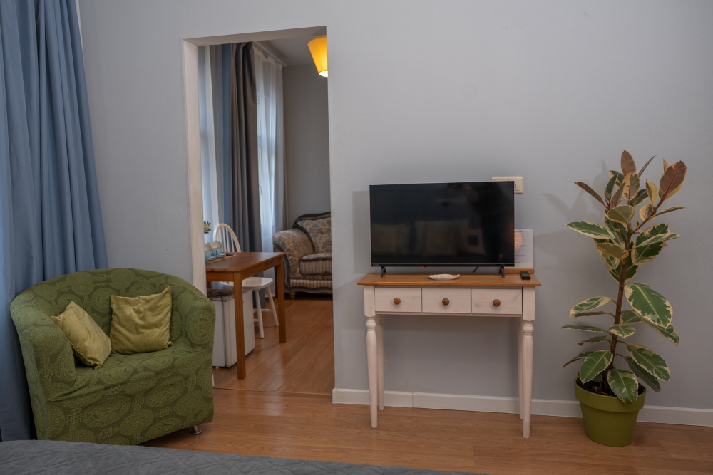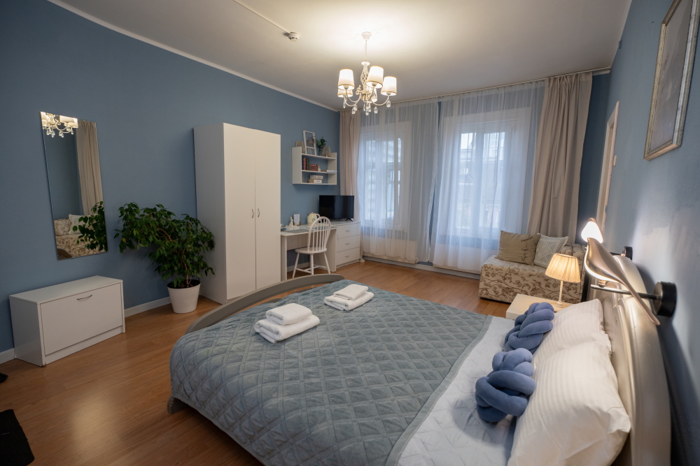 Две отдельные комнаты - с двуспальной кроватью и с удобным диваном.