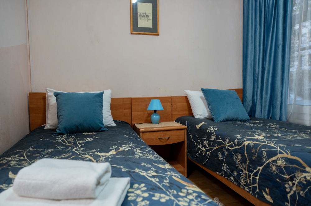 В Вашем распоряжении две односпальные кровати и удобный двуспальный диван.