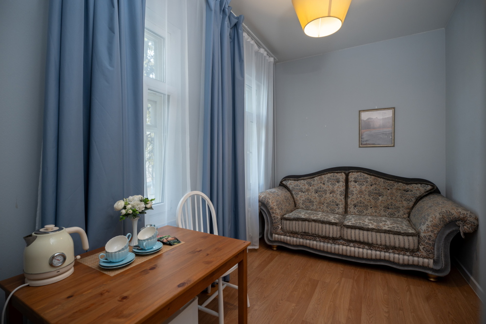 - Для семьи: просторные двухкомнатные номера с диванами и всем необходимым для детей (кроватка, стульчик для кормления, горшок).