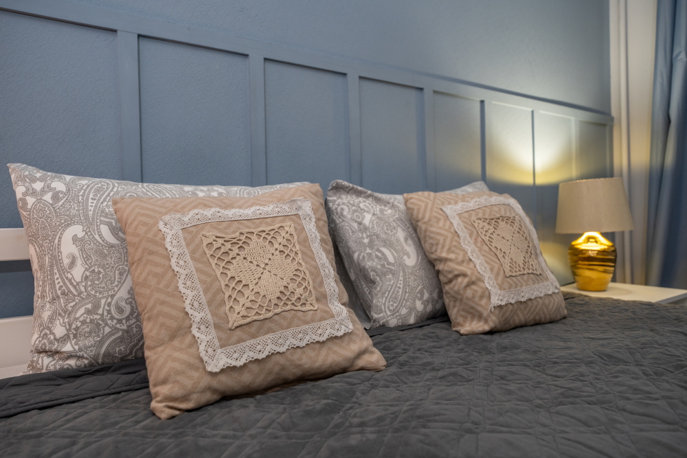 Уютная двуспальная кровать с ортопедическим матрасом.