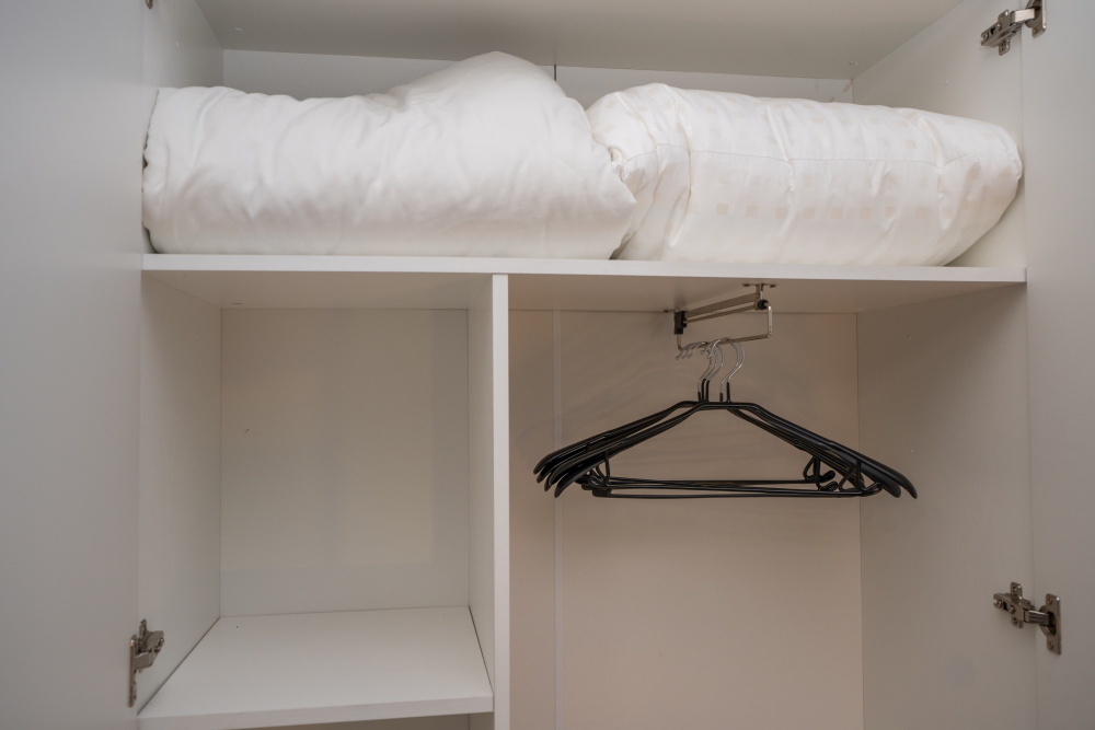 Всё необходимое для отдыха уже ждет Вас: тапочки, набор полотенец, фен, набор косметики (шампунь, гель для душа, мыло) и даже беруши для идеального сна.