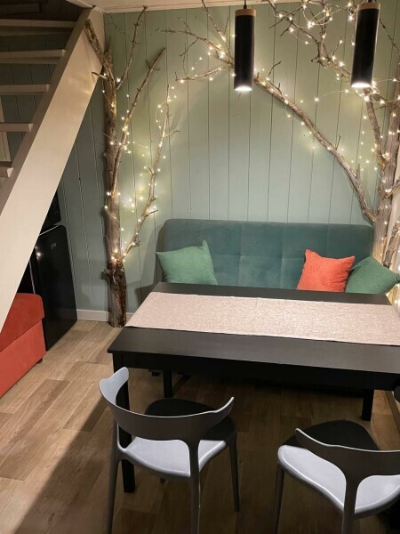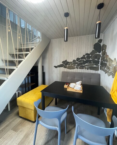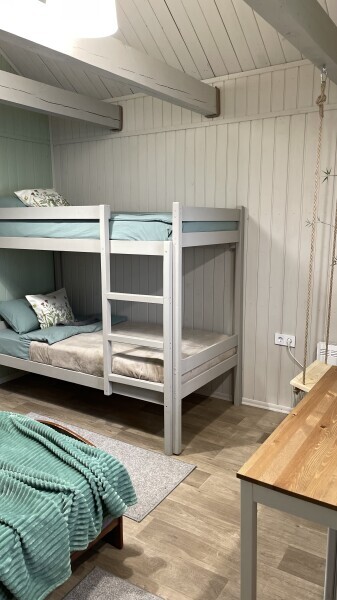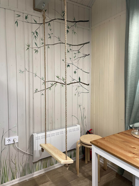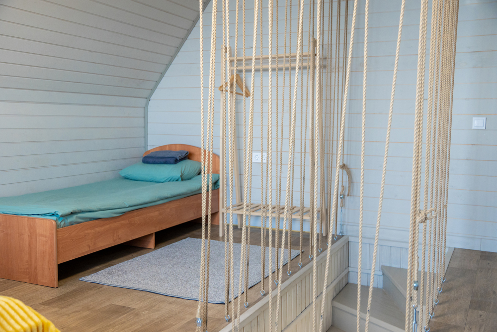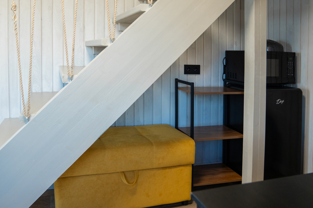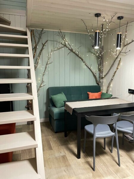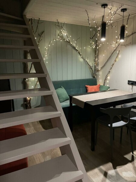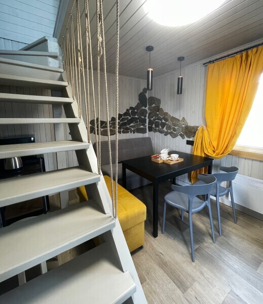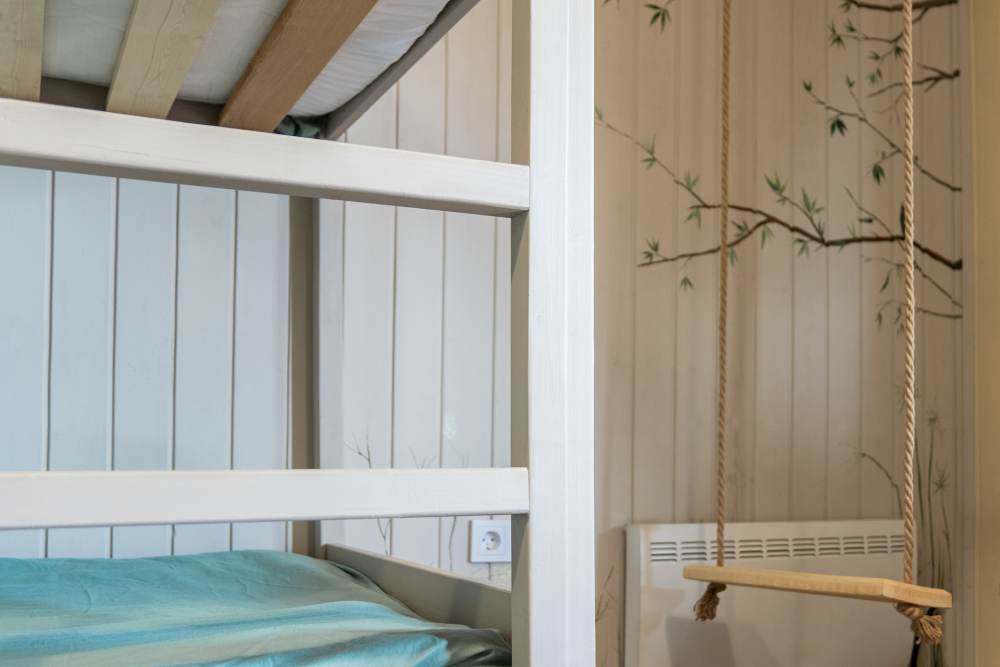 Дом «Лето» вдохновлен летним настроением. При создании дизайна этого дома мы использовали цвета и декор, напоминающие летние мотивы. Особенностью номера является качель, расположенная прямо в номере, которая не оставит никого равнодушным и вернет теплые воспоминания о летних каникулах в детстве.