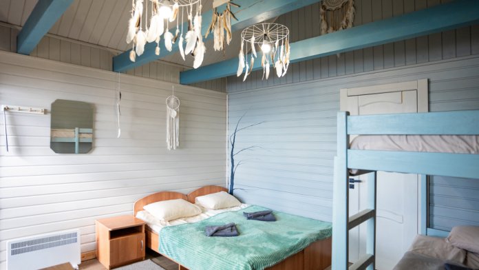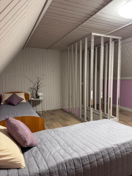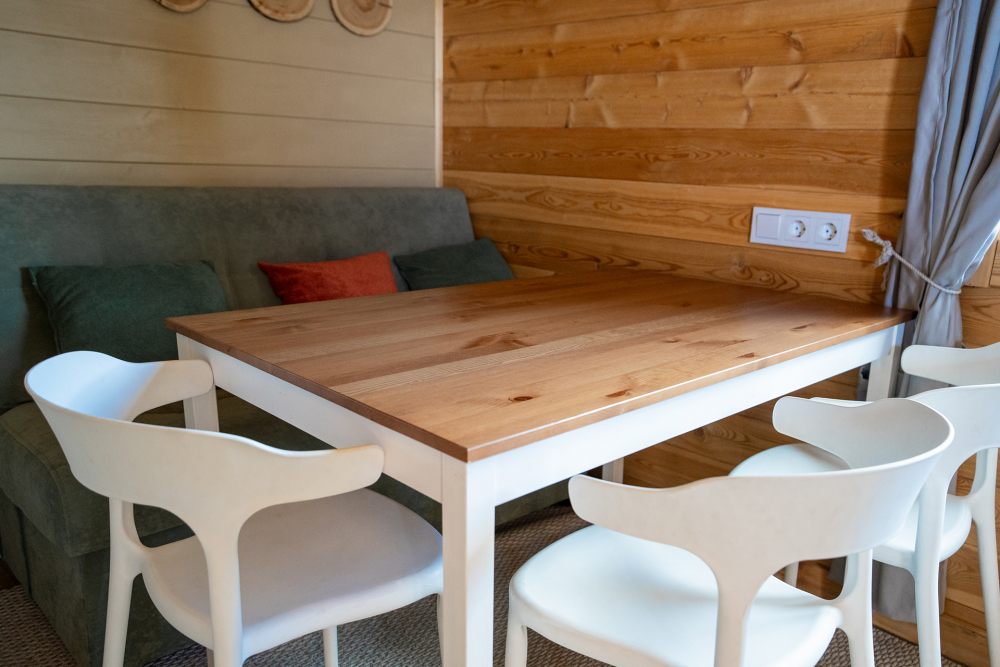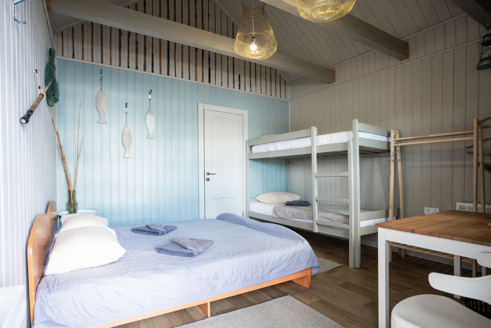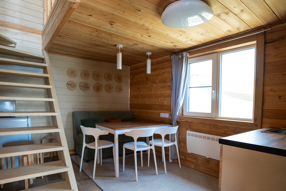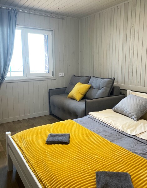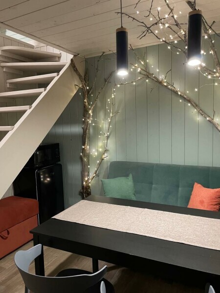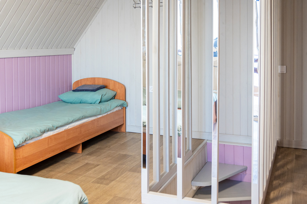 Дом «Лето» вдохновлен летним настроением. При создании дизайна этого дома мы использовали цвета и декор, напоминающие летние мотивы. Особенностью номера является качель, расположенная прямо в номере, которая не оставит никого равнодушным и вернет теплые воспоминания о летних каникулах в детстве.