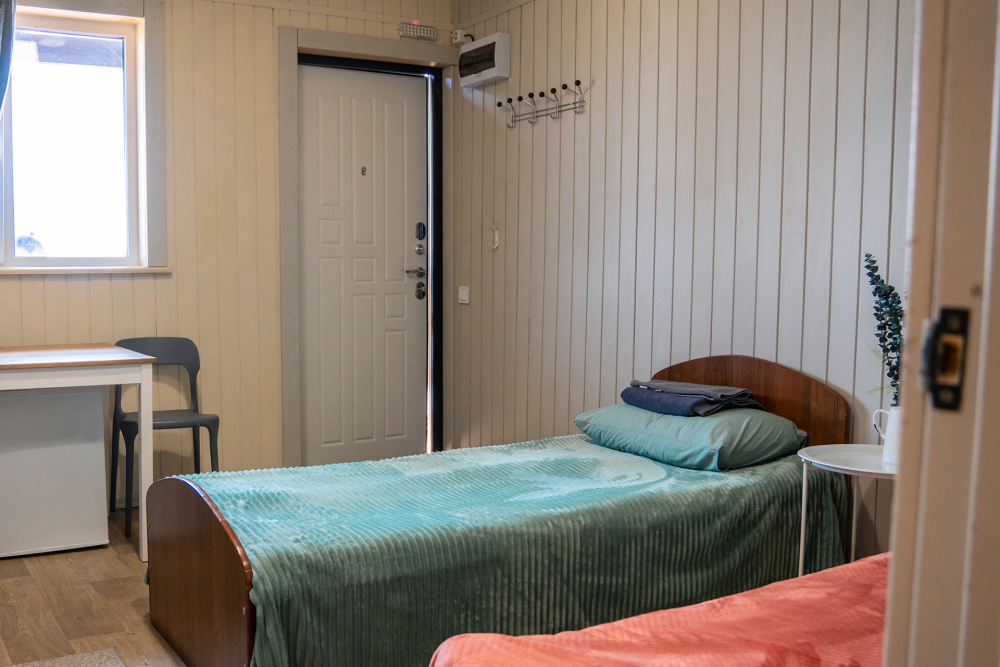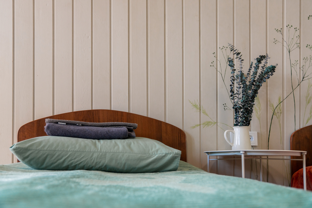 Номер оформлен в цветах деревьев байкальской местности. В отделке используется натуральное дерево с сохранением природной текстуры.