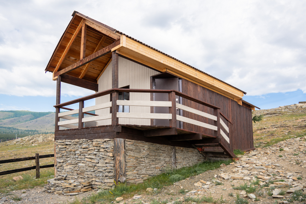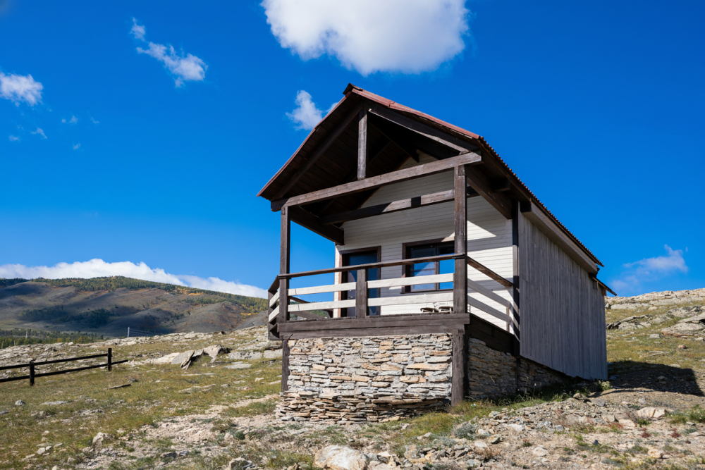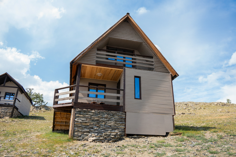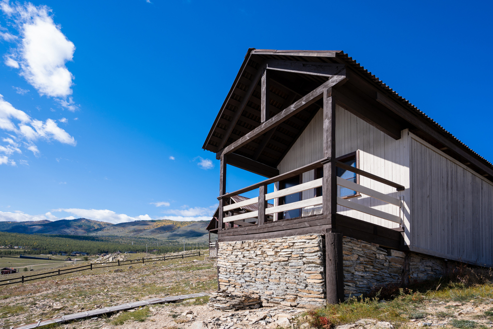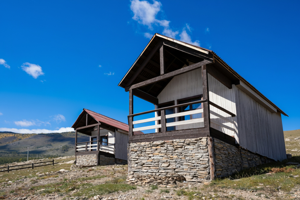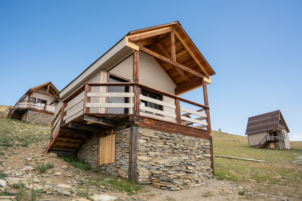 Отличный вариант для пары или одной семьи с детьми. У каждого дома своя небольшая терраса с видом на Байкал.